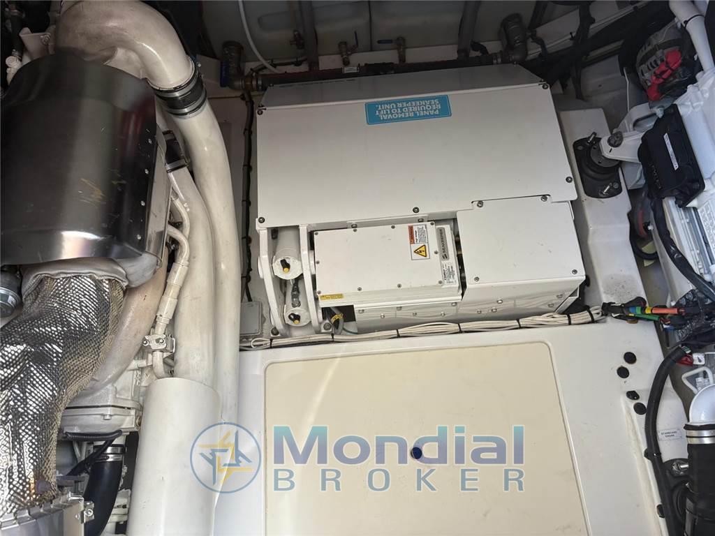 Allarme motore, Allarme sentina, Ancora, Antenna radar, Autoclave, Batterie, Bussola, Camminamenti laterali in teak, Caricabatterie, Comando motori elettronico, 3 Display (Garmin), Doccia esterna, Doppia timoneria, DSC vhf, Ecoscandaglio, Elica di prua - bow thruster, Flap elettrici, GPS, Impianto antincendio, Indicatori Flaps, 2 Joystick, Lavandino nel Pozzetto, Luci di navigazione, Passerella, Piattaforma (Idraulica), Pilota automatico, Pompa di sentina automatica, Pozzetto Teak, Presa 220V banchina, Quadro comandi, Radar, Radio VHF, Salpa Ancore Elettrico, Stabilizzatori (Seakeeper 9), Tavolo pozzetto, Tromba