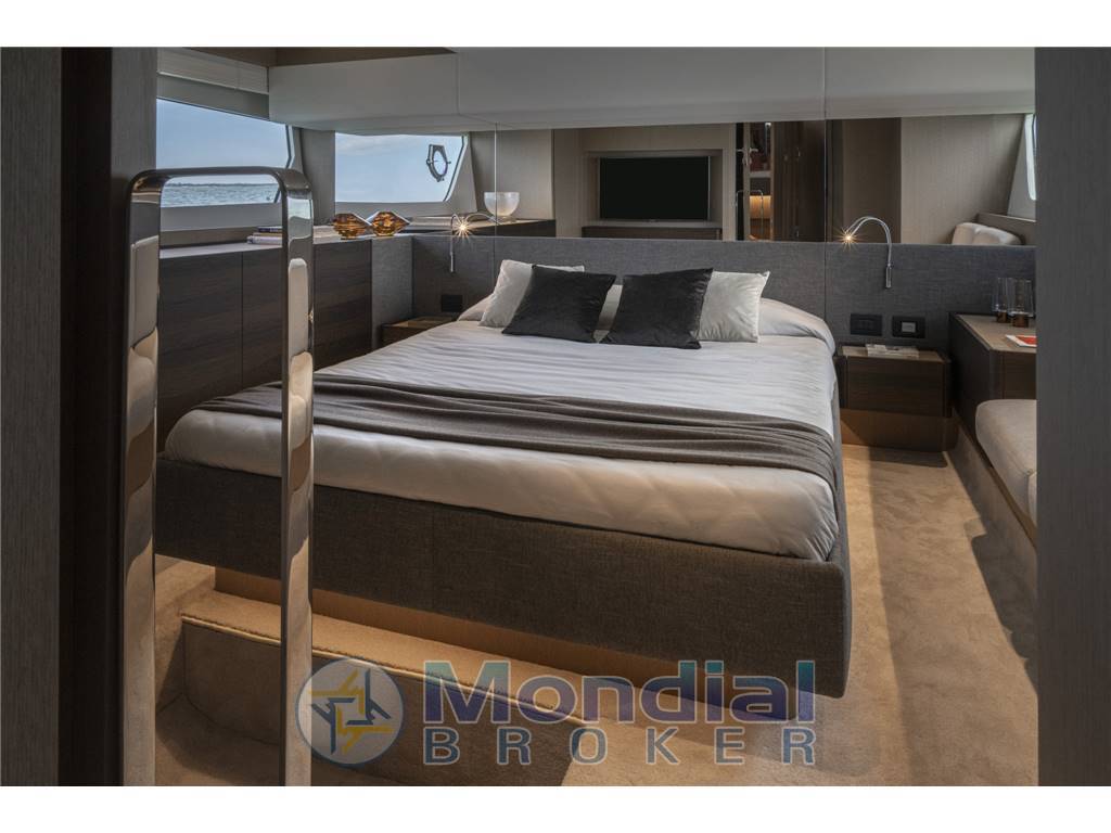 Accessori principali: Aria condizionata (salone, cabine, crew), Dissalatore 65 l/h (Idromar), Luci subacquee, Ice Maker, Frigo Fly(50 lt), Serbatoio acque grigie, Inverter 2500 W, Tende elettriche in salone, Seakeeper, Piattaforma di poppa elettroidraulica, Lavastoviglie, Lavasciuga, Ancora 32 kg, Catena 100 m, Bimini