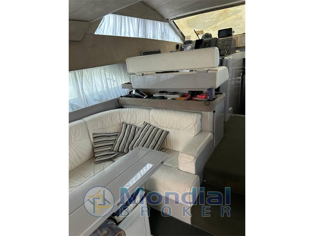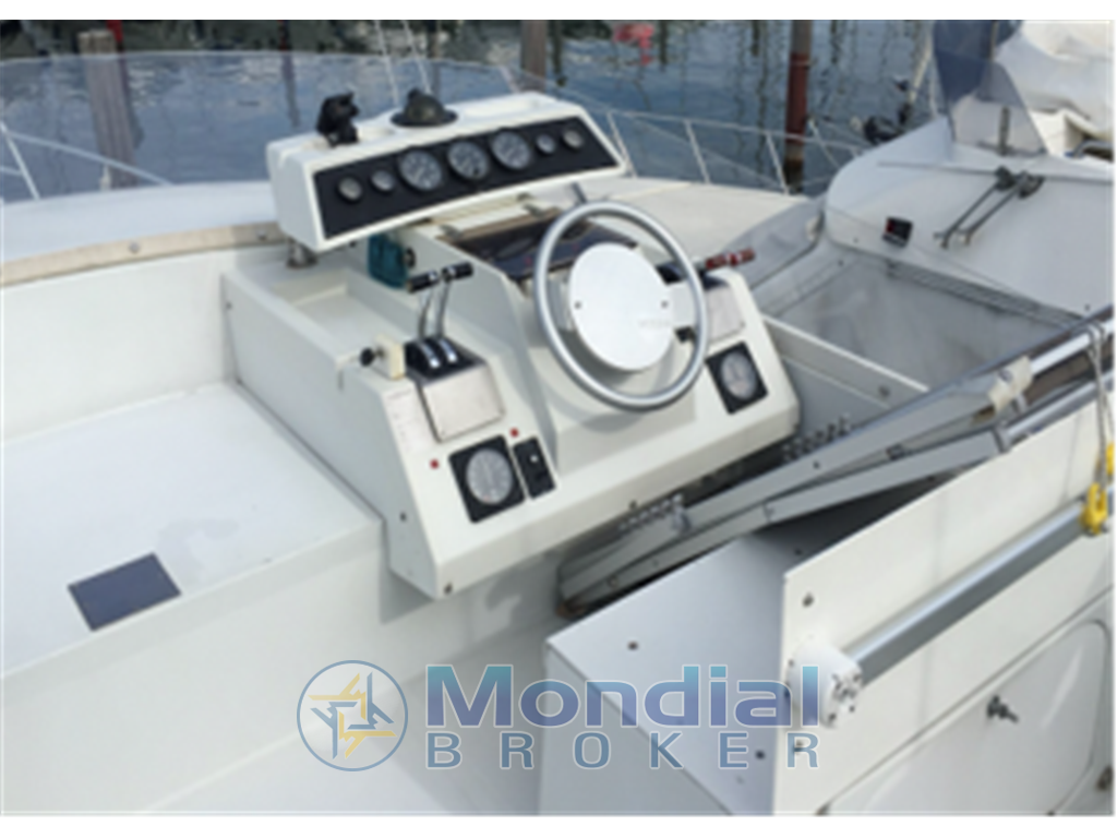 AIS, Angolo barra, Antenna radar, Computer di bordo, Display, Ecoscandaglio, GPS / Fly , Radar ( 1), 2 Radio VHF. Allestimento tecnico e di coperta: Allarme motore, Allarme sentina, Apertura Vano Motore Elettrica, Autoclave, 6 Batterie, , Doccia esterna, Faro orientabile, Flap idraulici, Impianto antincendio, Indicatori Flaps, Lavaggio catena, Luci di cortesia, Gruette per tender, Piattaforma, Pompa di sentina automatica, Pozzetto Teak, Presa 220V banchina, Presa acqua banchina, Ripetitore strumentazione sul Fly, Rollbar, Salpa Ancore Elettrico, Scaletta da bagno, Selle per Tender, Sistema Depurazione acque nere, Tavolo pozzetto, Tavolo Salone Abbattibile, Tender ( EV con motore HONDA da 4 CV.), Tromba, 1 Winch tonneggio di poppa.