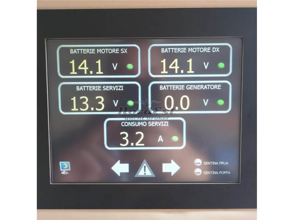 Dotato di doppio plotter Raymarine, radar, pilota automatico, ecoscandaglio passante, aria condizionata, generatore e domotica di bordo.