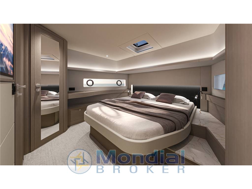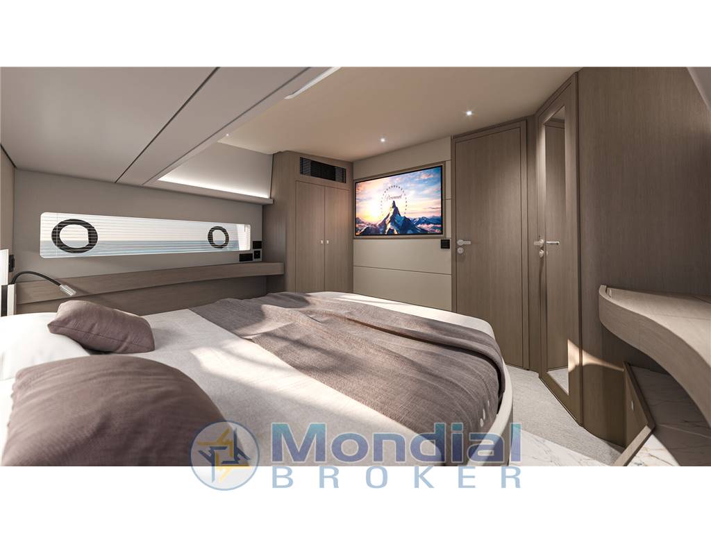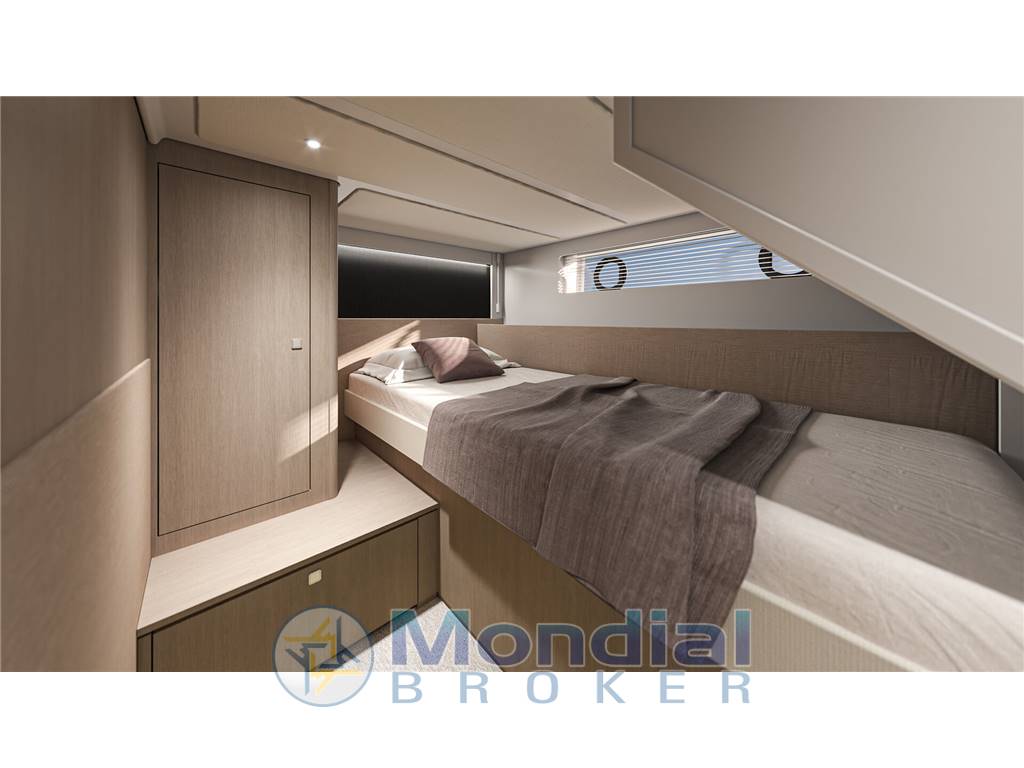 Gli ampi spazi esterni sono progettati per la massima vivibilità: grande pozzetto attrezzato per il relax e la convivialità, prendisole generosi a prua e poppa e una zona di comando ergonomica che garantisce controllo e sicurezza in navigazione. La circolazione a bordo è fluida e ben studiata, perfetta sia per la crociera che per l’uso giornaliero.