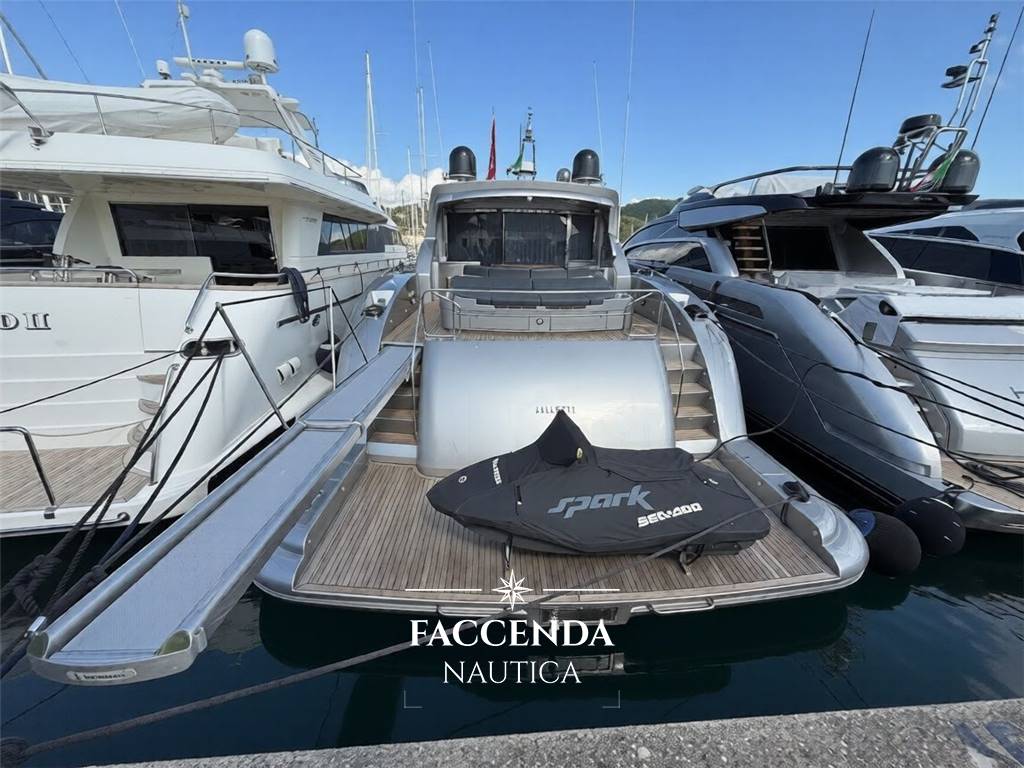 Si tratta di un’imbarcazione progettata per offrire velocità elevate senza sacrificare il comfort a bordo. Il design esterno è slanciato e aerodinamico, con linee tese tipiche degli yacht sportivi italiani dei primi anni 2000. Lo scafo è progettato per stabilità e controllo anche ad alte velocità.