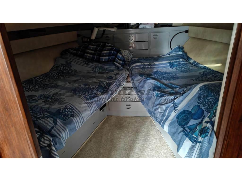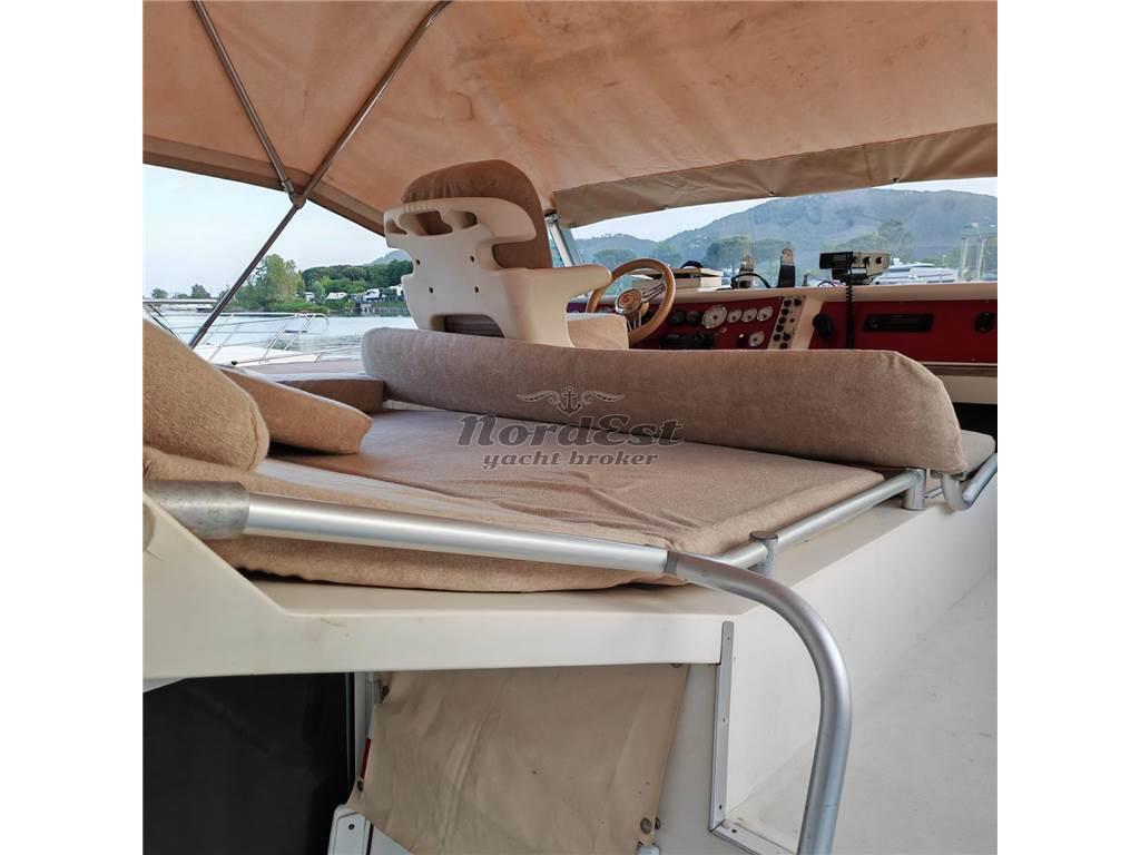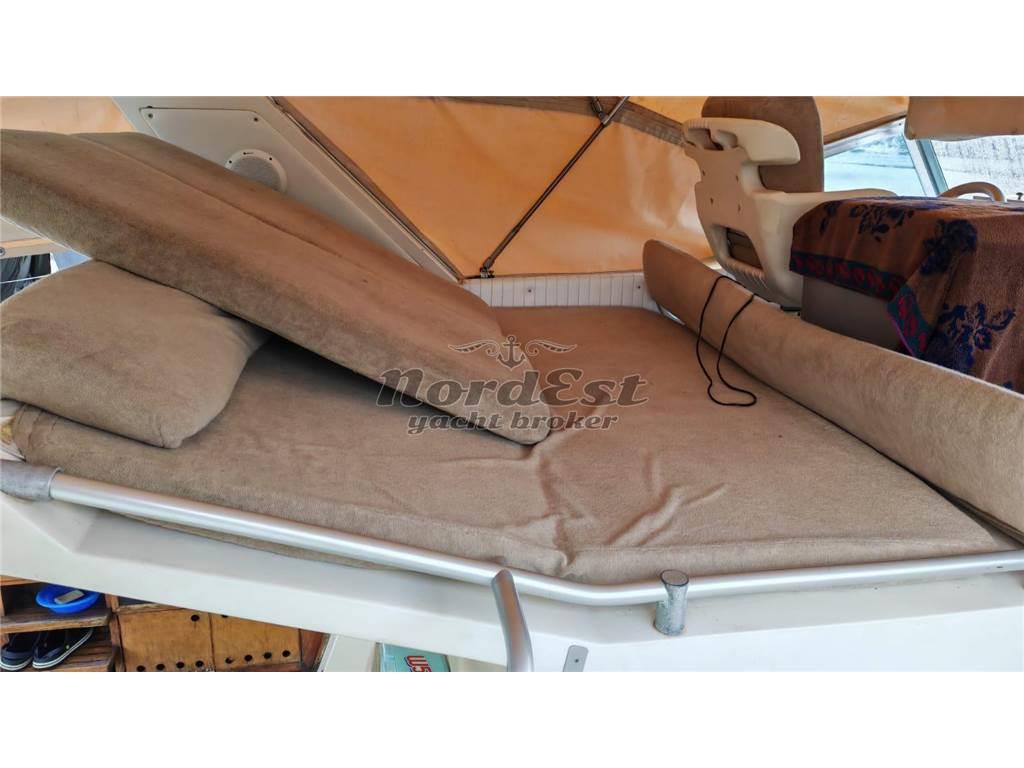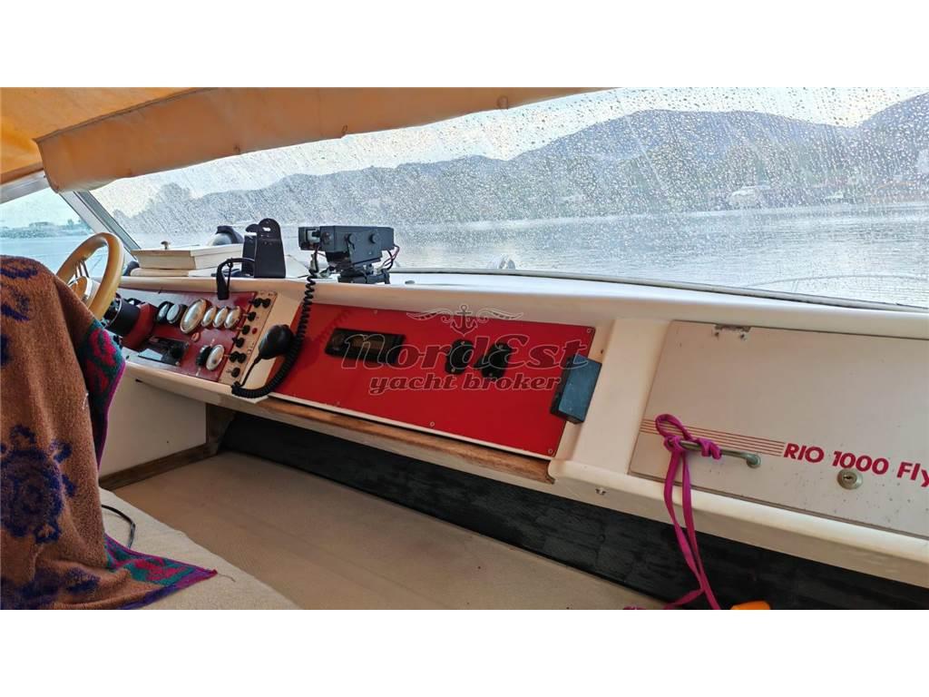 Rio 1000 Fly – anno 1990. Natante in ottime condizioni, appena refittato, motorizzato con due VM Mercruiser D-Tronic da 320 HP, completamente rifatti nel 2022 (circa 200/250 ore di moto). Molto performante: velocità di crociera 27/28 nodi a 3400 giri, velocità massima circa 38 nodi. Consumo a 22 nodi: 56 litri/ora totali.