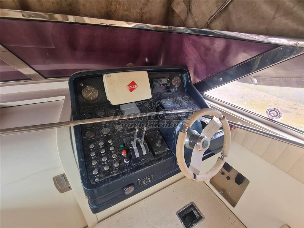 Sistemazione impianto elettrico e pannelli antirombo, tutta la tubazione dei motori nuovi, sistemato tutto il reparto batterie, pulizia completa carena, tutte le valvole presa a mare nuove, verniciatura motore con vernice originale, cambiato guarnizioni asse elica, copertura telo sopra nuova.