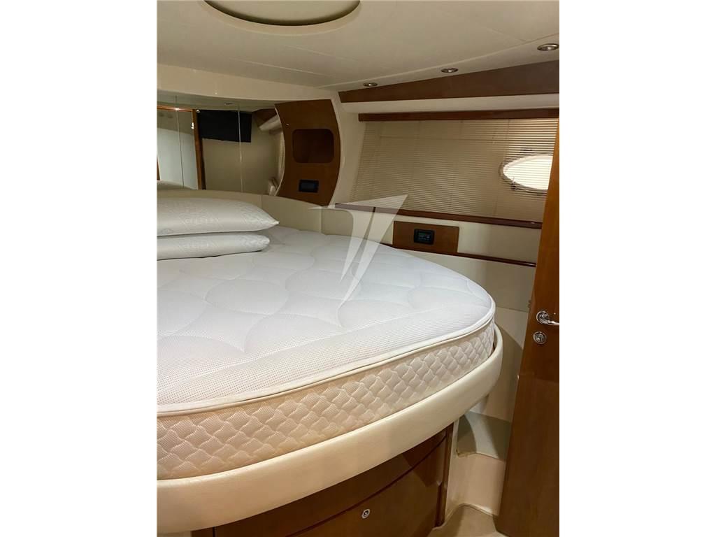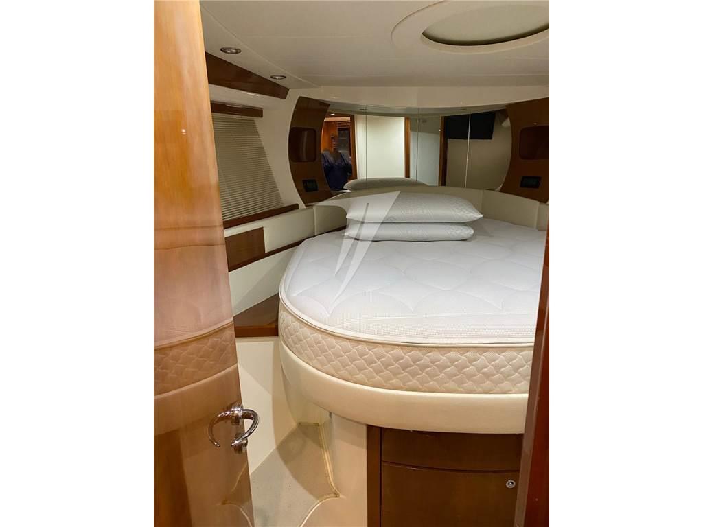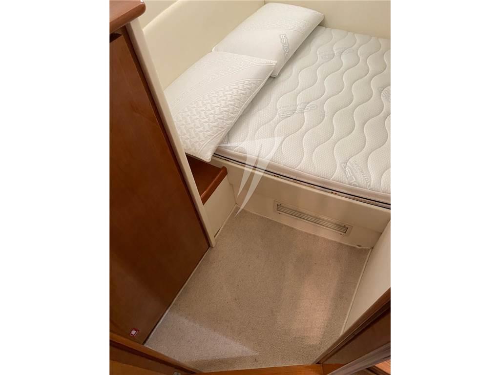 1 Doppia in piano, 1 Matrimoniale italiana, 1 Matrimoniale francese, 1 Cabina equipaggio, 2 Toilette. Persone trasportabili: 12.