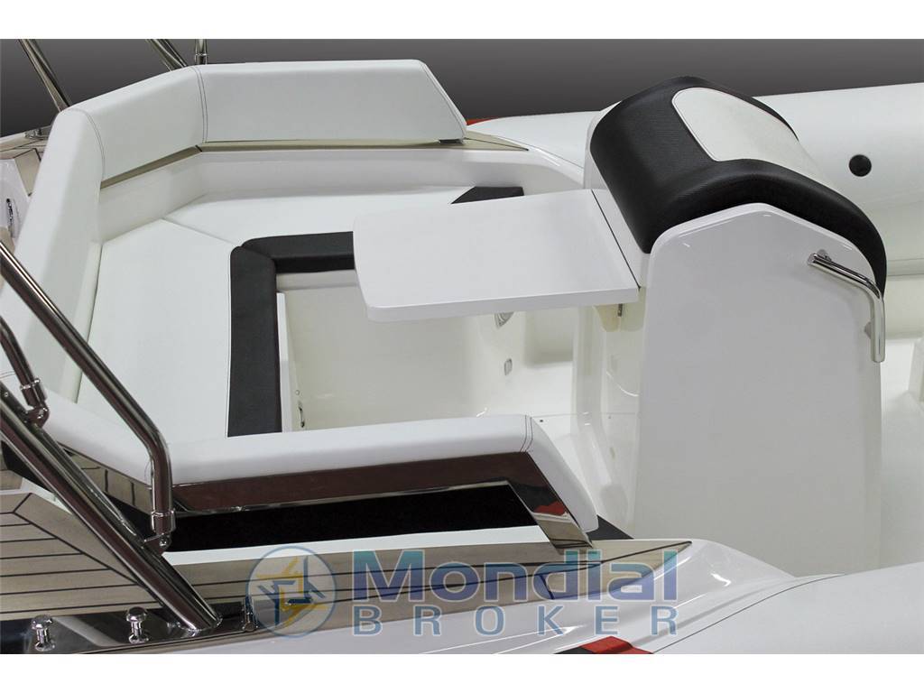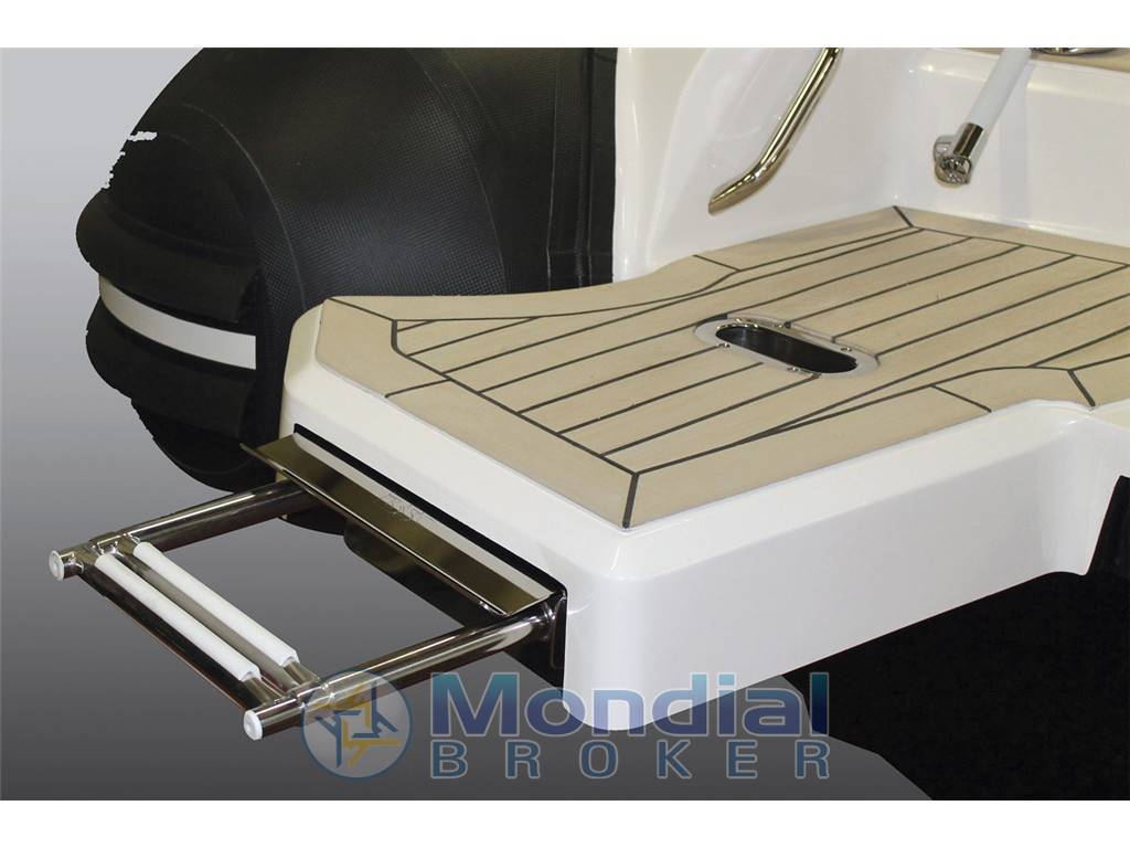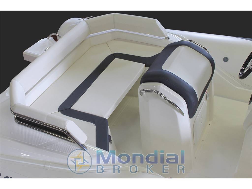 Optionals: verricello elettrico, timoneria idraulica, Rollbar con tendalino nero, luci led Rollbar e tromba, prolunga di prua, telo copri console, telo completo, Teak, doccia, luci di cortesia, gonfiatore elettrico, Stereo.