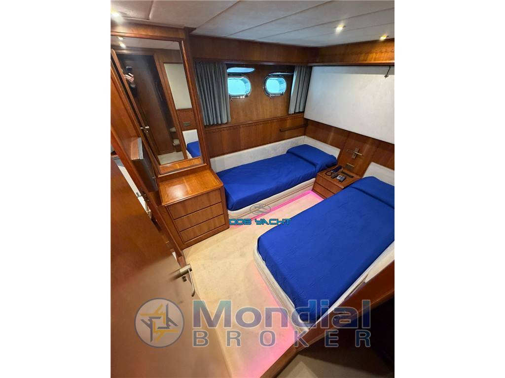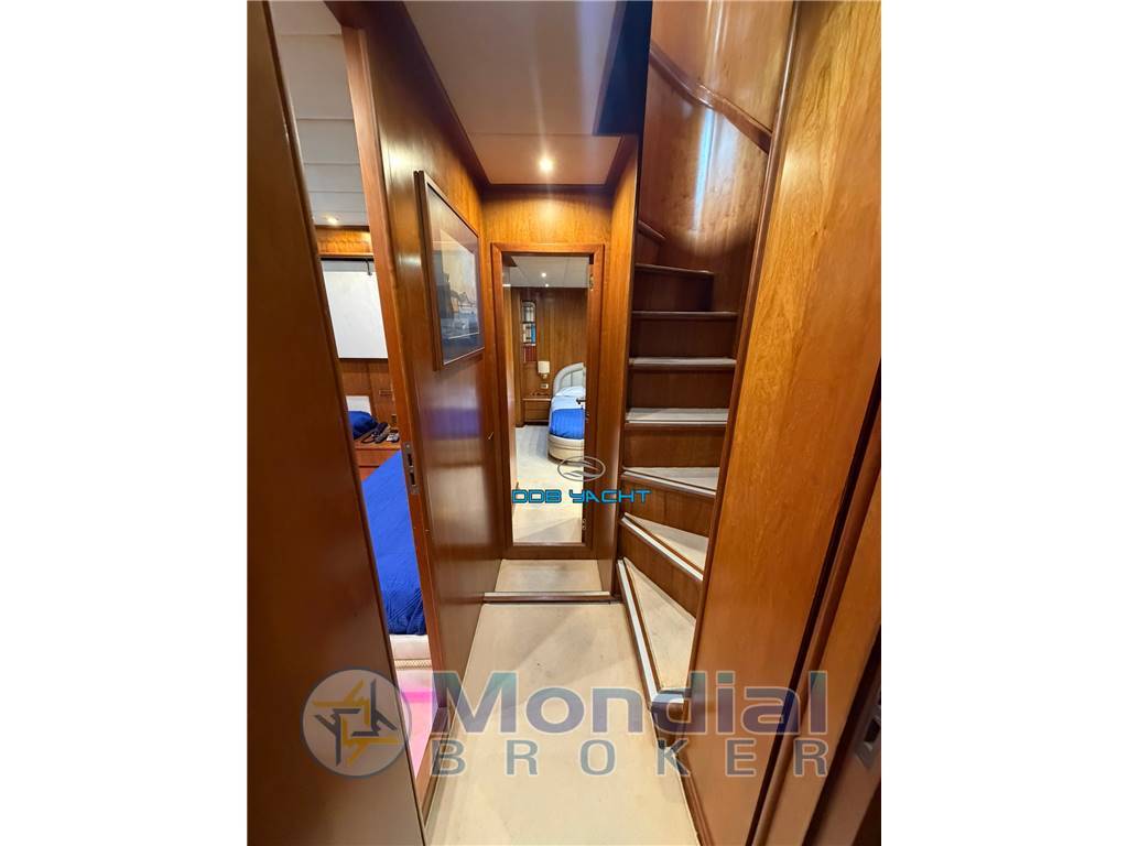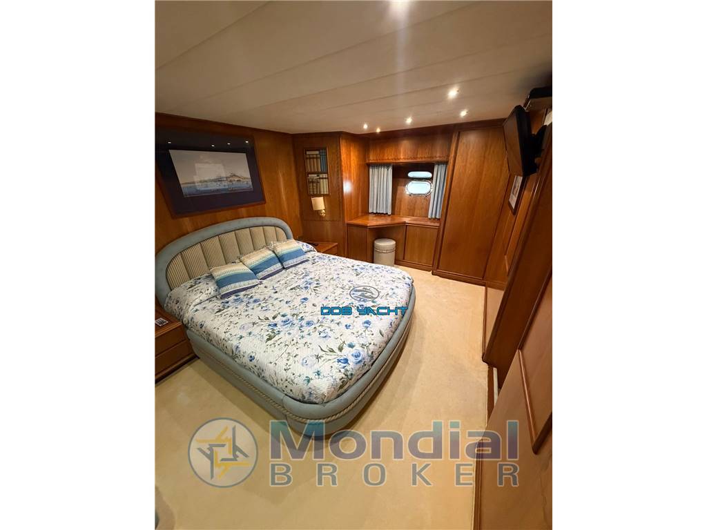 Dotazione armamento e accessori: dotazioni di bordo e di sicurezza, tendalino parasole con arcata in acciaio FLY, tendaggio CARAVAN con chiusura totale completo pozzetto, passerella idraulica, pedana di poppa rivestita in TEAK con scaletta bagno di risalita, FLY con TEAK, teli copri vetri.