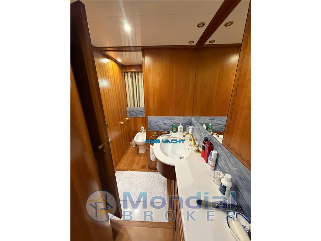 3 CABINE, 4 BAGNI, CABINA EQUIPAGGIO A PRUA: cabina armatoriale a poppa con locale WC separato, cabina doccia e cabina armadio, cabina OSPITI a prua con letto matrimoniale e locale WC indipendente con cabina doccia, III cabina ospiti con letti in piano a dritta con suo locale WC separato con cabina doccia , ampio salone con divani contrapposti e tavolo da pranzo a dritta, cucina ad L separata a sinistra con porta di uscita sul lato, lavabo, ampi piani di appoggio, piano cottura in vetroceramica, frigo ISOTHERM e lavastoviglie, plancia di comando con seduta del capitano, locale WC separato giornaliero in salone, II porta di uscita a dritta; ampio pozzetto di poppa con tavolo e sedie, prendisole di prua;