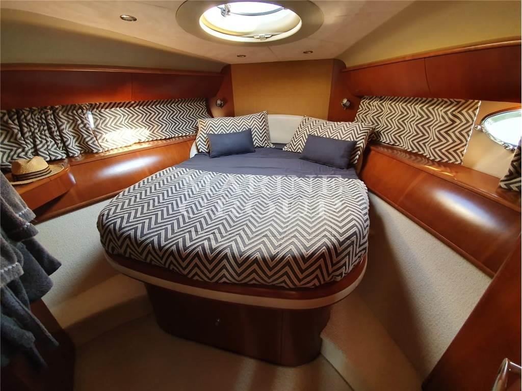 Pavimento in parquet; mobili interni in essenza di ciliegio; salone con divano "C" e cucina prospicente completamente attrezzata; cabina armatoriale matrimoniale a centro barca con bagno ensuite; cabina VIP matrimoniale a prua con accesso diretto al bagno; terza cabina ospiti con letti singoli a castello.