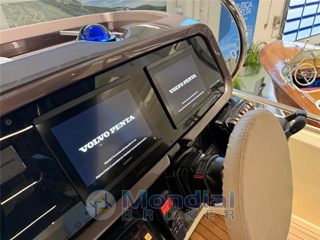 Allarme motore, Ancora, Angolo barra, Autoclave, Batterie, Bussola, Camminamenti laterali in teak, Caricabatterie, Colorazione speciale (WILD BRONZE), Comando motori elettronico, Doccia esterna, Ecoscandaglio, Elica di prua - bow thruster, Flap elettrici, Hard top, Impianto antincendio, Indicatori Flaps, Lavandino nel Pozzetto, Luci di cortesia, Luci di navigazione, Piattaforma, 2 Plotter con antenna GPS (Glass Cockpit Volvo Penta 10"), Pompa di sentina automatica, Pompa di sentina elettrica, Pozzetto Teak, Presa 220V banchina, Radio VHF, Salpa Ancore Elettrico, Scaletta da bagno, Sedile Copilota, Tavolo pozzetto, Tromba