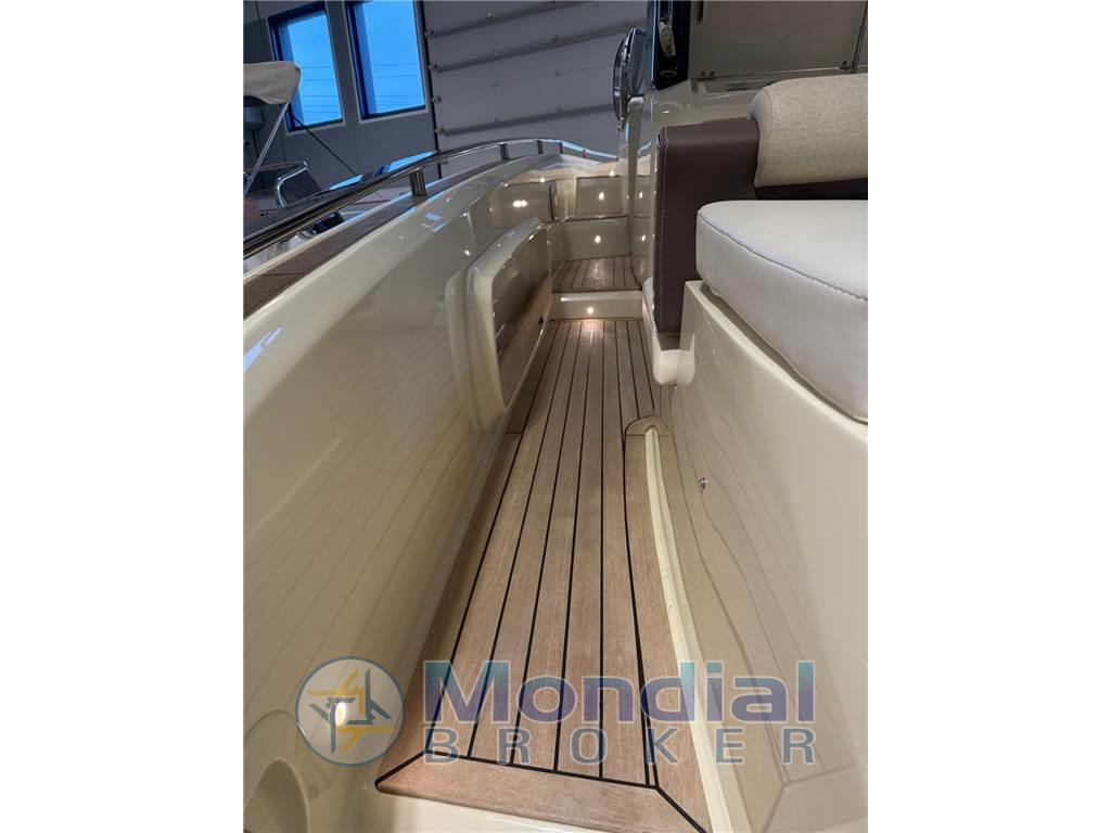 Altoparlanti, Aria condizionata, Boiler, Cuscineria di poppa, Cuscineria di prua, Frigorifero esterno, Frigorifero interno, Impianto acque nere, Pavimento interno in legno, Prese interne 12v, Prese interne 220v, Stereo (Fusion interfacciato con elettronica, comandabile con app e da Gamin), Telo copriconsolle, Telo coprisedile, WC marino elettrico