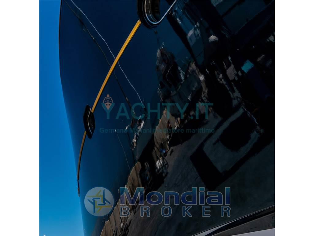 Allarme motore, Allarme sentina, Ancora, Camminamenti laterali in teak, Cavo corrente di banchina, Colorazione speciale, Doccia esterna, Doppia timoneria, Elica di poppa - stern thruster, Elica di prua - bow thruster, Faro orientabile, Flap elettrici, Hard top, Impianto antincendio, Impianto Aria Compressa, Indicatori Flaps, Luci di cortesia, Luci subacquee, Passerella, Pompa di sentina automatica, Pompa di sentina elettrica, Pompa di sentina manuale, Porta ingresso, Porta laterale, Pozzetto Teak, Ripetitore strumentazione, Salpa Ancore Elettrico, Scaletta da bagno, Tavolo pozzetto, Tender, Tientibene con cancelletti, Tromba, 2 Winch tonneggio di poppa.