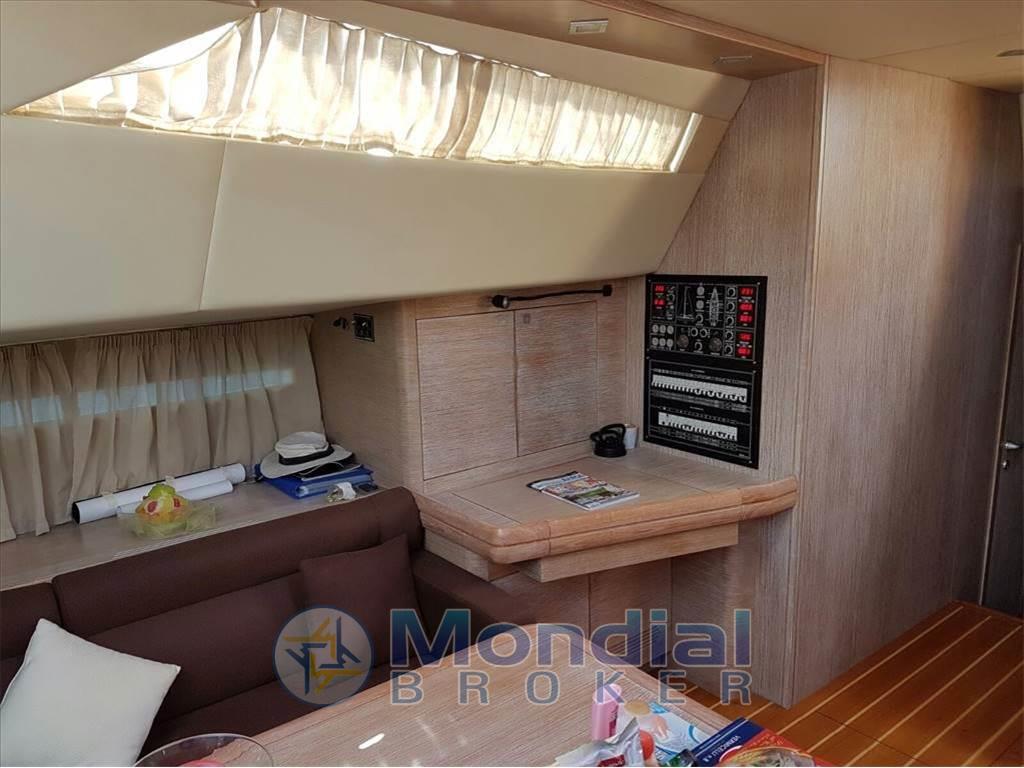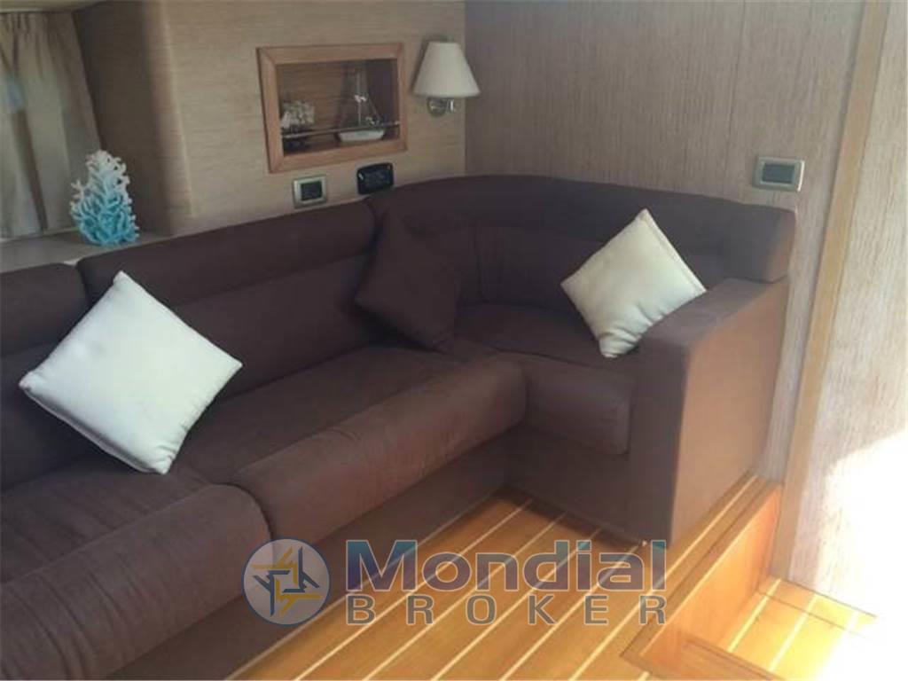 Ampio pozzetto con tavolo - dinette con divani, tavolo e cucina - tavolo e postazione carteggio - versione con cabina armatoriale con letto matrimoniale e bagno a prua - cabina ospiti con due letti in piano e bagno - cabina ospiti con due letti in piano centro barca tutte e due verso poppa - cabina ospiti con due letti sovrapposti - bagno ospiti in comune fra cabina a letti sovrapposti e cabina a letti in piano.