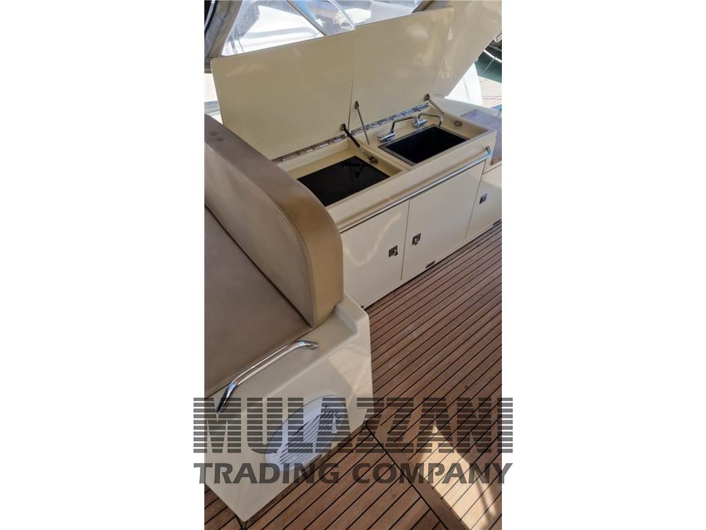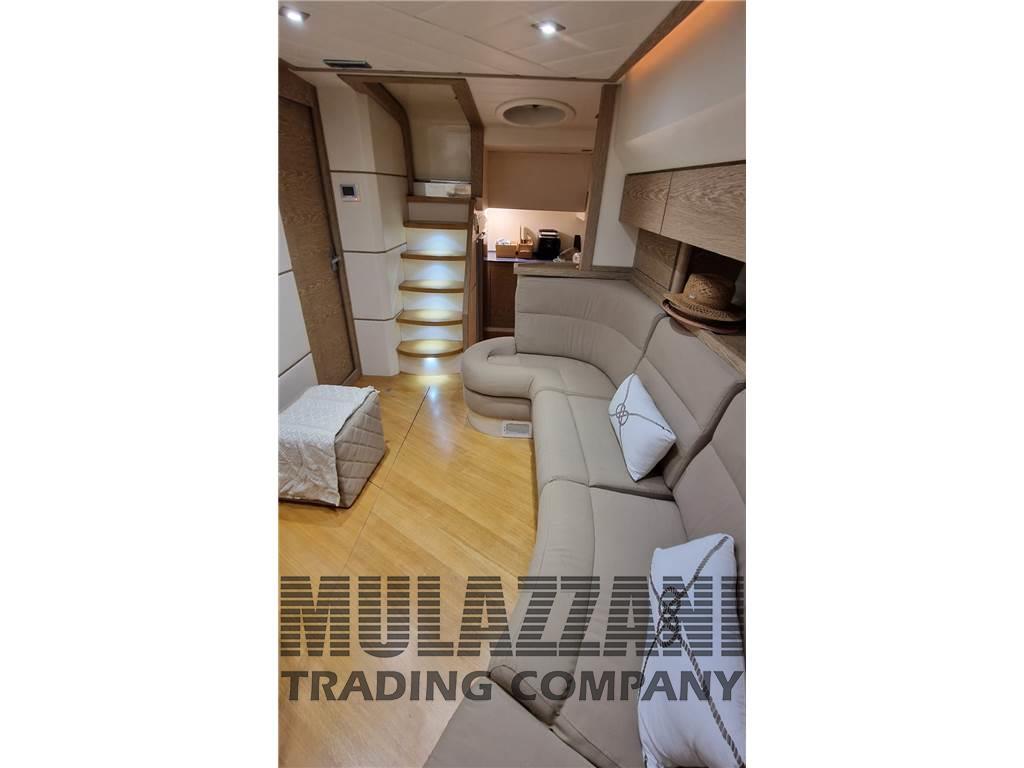 Acqua Calda, Altoparlanti, Aria condizionata (in tutti gli ambienti), Barometro, Boiler (elettrico), Cappottina, Cassaforte, Cassetta di pronto soccorso, Cucina, Cuscineria completa, Cuscineria di poppa, Cuscineria Pozzetto, Dotazioni di sicurezza oltre 50 miglia, Frigorifero esterno, Frigorifero interno, Giubbetti di salvataggio, Indicatore del serbatoio del carburante, Indicatore del Serbatoio dell’Acqua, Microonde, Pavimento interno in legno, Piastra elettrica (cucina interna), Piastra in vetroceramica (cucina esterna), Prese interne 12v, Prese interne 220v, Salvagente anulare con cima munita di boetta luminosa, Stereo (con bluetooth), 2 WC marino elettrico, Zattera di salvataggio (in corso di validita), Sincronizzatore motori