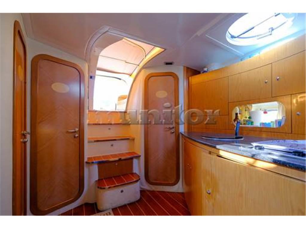 Plancetta da bagno, Caricabatterie, Bimini top, Elica di prua, Doccia in pozzetto, Bussola, Cuscini di coperta, Ecoscandaglio, WC El., Salpa ancora El., Parabordi, Plotter GPS, Serbatoio acque grigie, Impianto acqua calda, Passerella idraulica, Microonde, Scaletta bagno, VHF