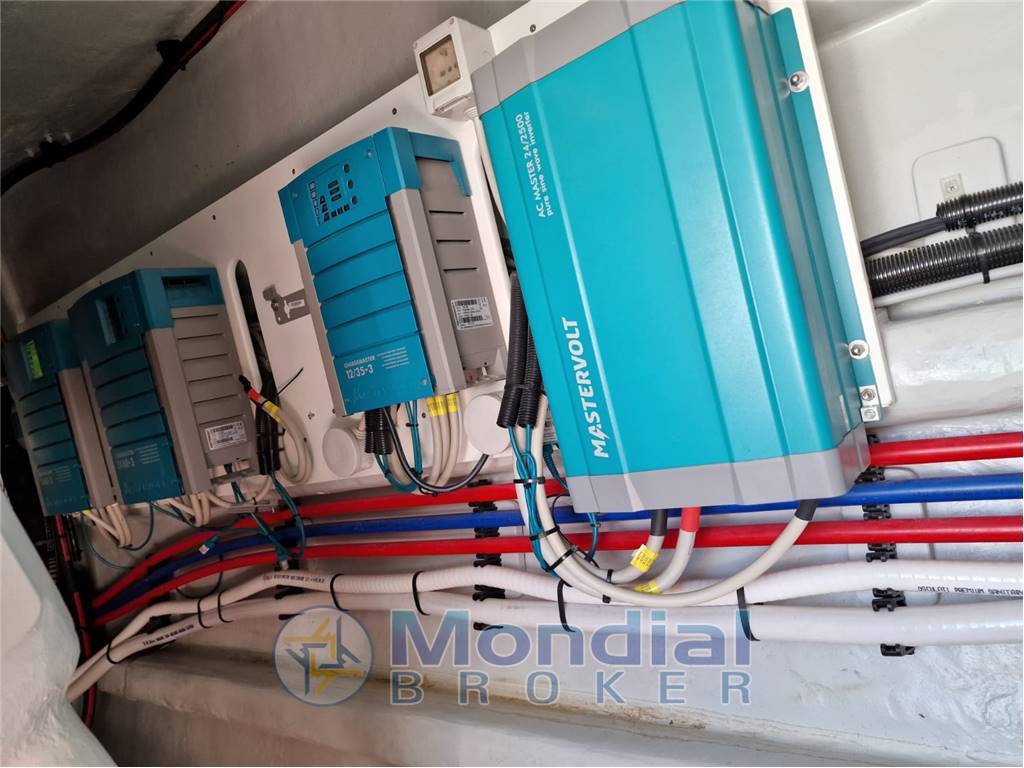 2x Mastervolt 24/60-3; Inverter Mastervolt 24/2500W, Isolatore galvanico Victron, Convertitore Mastervolt 24/12V, Controllo elettronico batterie Mastervolt (Tutti 2020). Prese da terra. Batterie tutte 2020.