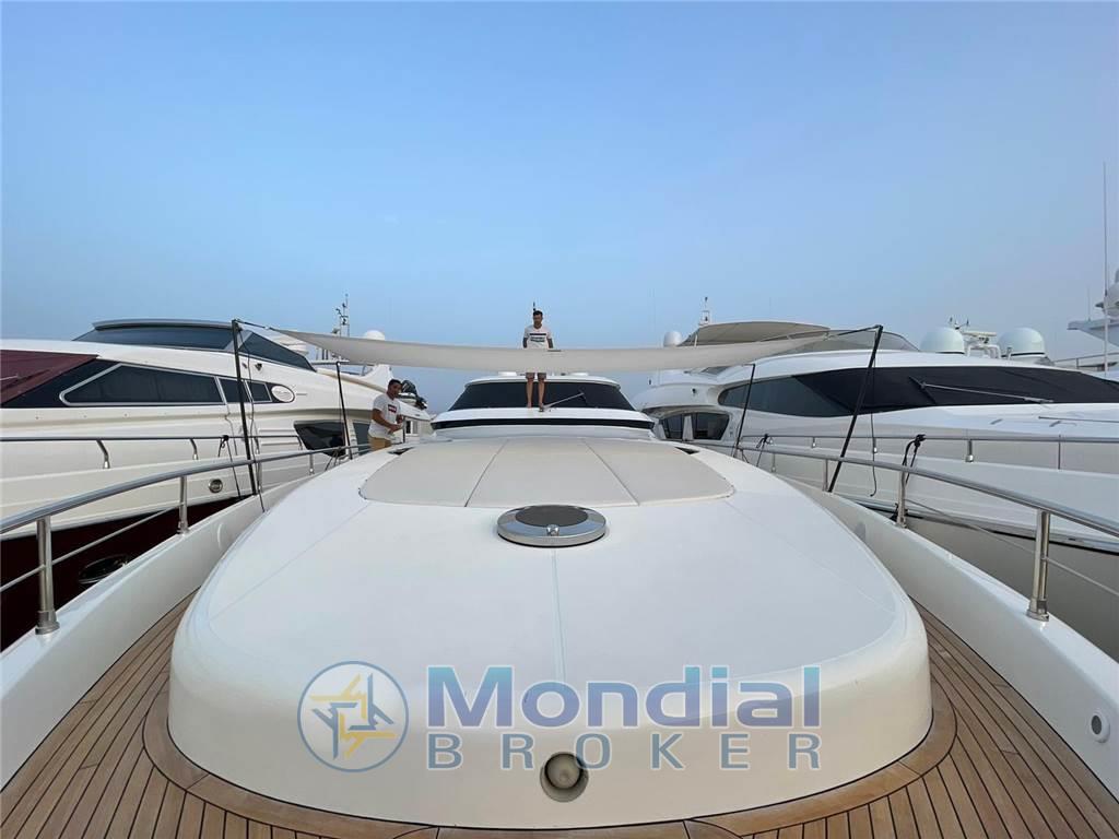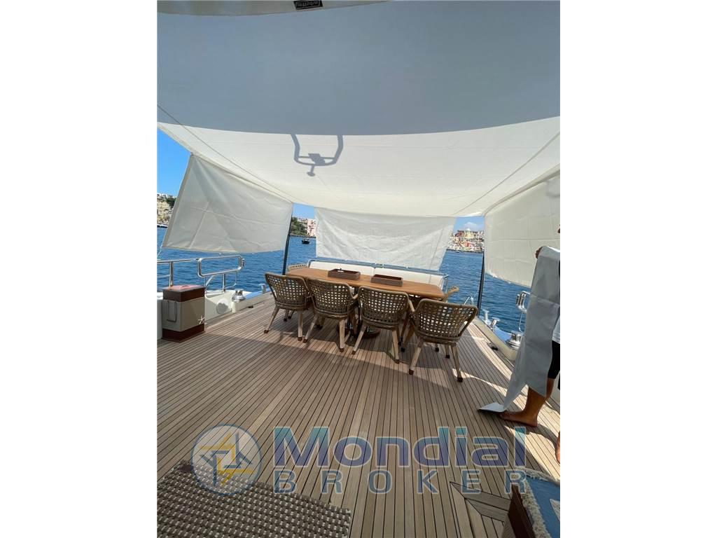 2 Allarme motore, Allarme sentina, Ancora (Bruce Kg 50 zincata + 100 mt. catena 14mm), Angolo barra, Antenna radar (Furuno), Autoclave, Bussola, Camminamenti laterali in teak, Caricabatterie, Comando motori elettronico (ZF), Computer di bordo, Contamiglia, Doccia esterna, Ecoscandaglio, Elica di poppa - stern thruster (Sidepower), Elica di prua - bow thruster (Sidepower), Faro orientabile (elettrico), Flap idraulici, Garage per tender, GPS, Hard top, Impianto antincendio, Joystick, Lavandino nel Pozzetto, Luci di cortesia, Passerella (idraulica Pin-Craft), Piattaforma (con piano in teak), Pilota automatico (Navicontrol AP 3003 Gold), 2 Plotter, 6 Pompa di sentina automatica, Pompa di sentina manuale, Ponte in teak, Porta ingresso, Pozzetto Teak, Presa 220V banchina, Presa acqua banchina, Radar (Furuno), Raddrizzatore, Radio VHF (Raymarine), Salpa Ancore Elettrico (4000 W), Scaletta da bagno, Sedile Copilota, Tavolo pozzetto, Tender, 2 Winch tonneggio di poppa