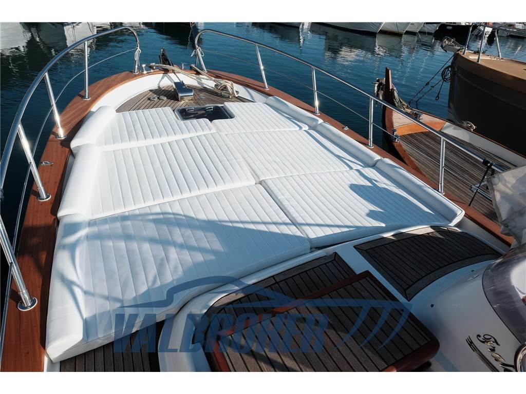 Ancora, Autoclave, 2 Batterie, Bussola, Camminamenti laterali in teak, Caricabatterie, Doccia esterna, Ecoscandaglio, Elica di prua - bow thruster (sidepower), GPS, Impianto antincendio, Indicatori Flaps (Bennett), Piattaforma (Teak), Pilota automatico, Pozzetto Teak, Presa 220V banchina, Radio VHF, Salpa Ancore Elettrico, Scaletta da bagno, Tavolo pozzetto, Tromba