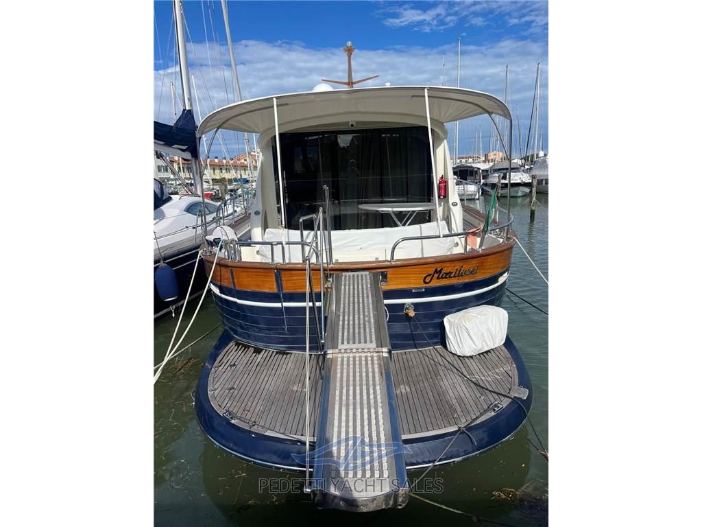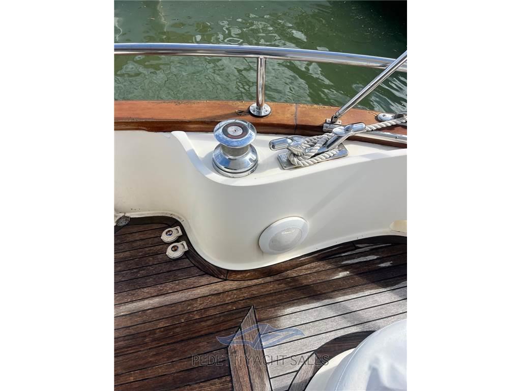 gozzo classico sorrentino prodotto nel 2007 che combina eleganza, comfort e performance. Con i suoi 13,2 (14,60 ft) metri di lunghezza e 4,7 metri di larghezza, questa imbarcazione offre ampi spazi interni con tre cabine, due bagni e una cabina equipaggio indipendente, perfetta per crociere con famiglia e amici. Sotto il profilo tecnico, è motorizzata con due potenti Volvo Penta da 480 CV ciascuno con circa 1.000 ore di moto, in grado di raggiungere una velocità di crociera di circa 26 nodi e punte massime fino a 31 nodi, grazie a una carena rinomata per la sua ottima tenuta di mare. La navigazione è facilitata da elettronica all’avanguardia, tra cui GPS, radar, autopilota e elica di prua. Tender Zodiac con motore fuoribordo 4t.