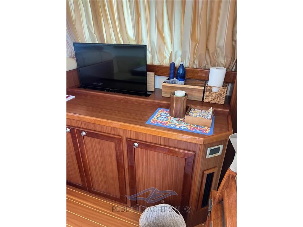 Acqua Calda, Altoparlanti, Antenna Satellitare TV, Aria condizionata, Barometro, Boiler, Carte nautiche, Cassetta di pronto soccorso, Clima reversibile, Cucina, Cuscineria completa, Cuscineria di poppa, Cuscineria di prua, Decoder satellite, Dotazioni di sicurezza entro 50 miglia, Forno, 2 Frigorifero interno (cucina e dinette), Giubbetti di salvataggio, ICE Maker, Impianto TV, Indicatore del serbatoio del carburante, Indicatore del Serbatoio dell’Acqua, Indicatore della pressione dell’olio nel motore, Indicatore della temperatura del motore, Lavastoviglie, Pavimento interno in legno, Piastra in vetroceramica, Prese interne 12v, Prese interne 220v, Radio AM/FM, Riscaldamento, Salvagente, Salvagente anulare con cima munita di boetta luminosa, Stereo, Telecamera (pozzetto), Telo coprisedile, Tendalino, TV, WC marino elettrico, Zattera di salvataggio