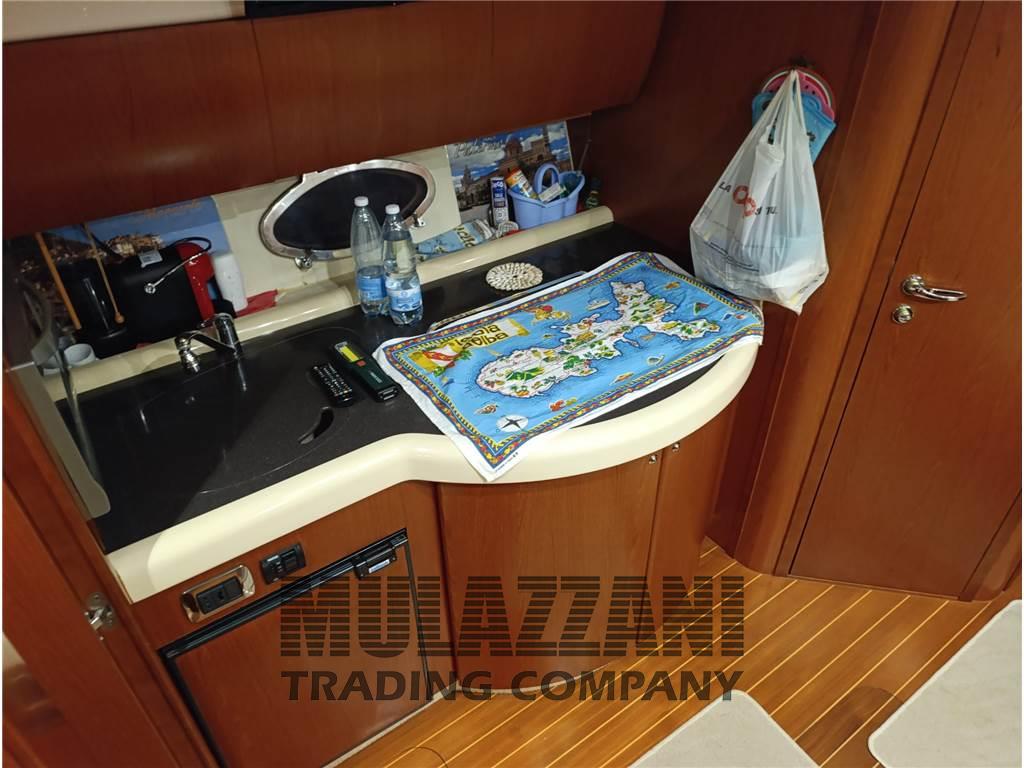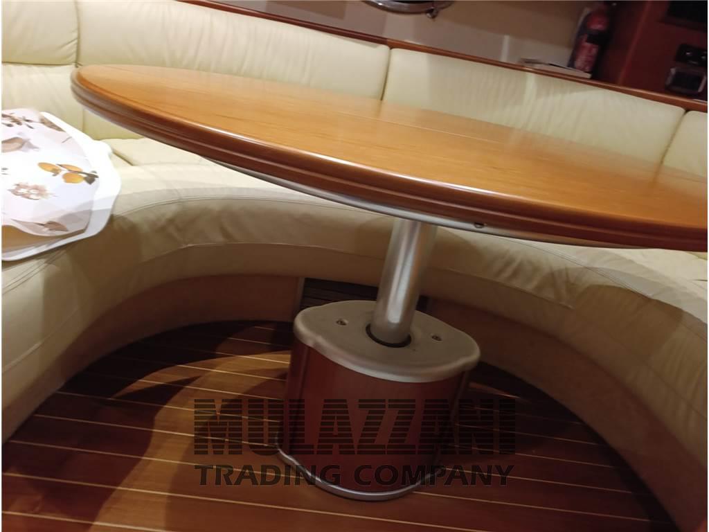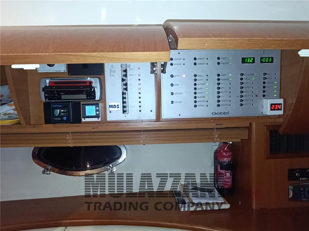 Acqua Calda, Altoparlanti, Antenna Satellitare TV, Aria condizionata, Barometro, Boiler (bivalente), Cassetta di pronto soccorso, Clima reversibile, Cucina, Cuscineria completa, Cuscineria di poppa, Cuscineria di prua, Cuscineria Pozzetto, Dissalatore (50lh), Dotazioni di sicurezza entro 50 miglia, DVD, Forno, Frigorifero interno, Giubbetti di salvataggio, Impianto TV, Indicatore del serbatoio del carburante, Indicatore del Serbatoio dell’Acqua, Inverter, Microonde, Pavimento interno in legno, Piastra elettrica (in pozzetto), Prese interne 12v, Prese interne 220v, Riscaldamento, Salvagente anulare con cima munita di boetta luminosa, Serbatoio Acque Nere, Stereo, Tendalino, TV, 2 WC marino elettrico, Zattera di salvataggio, Ventilazione sala motori
