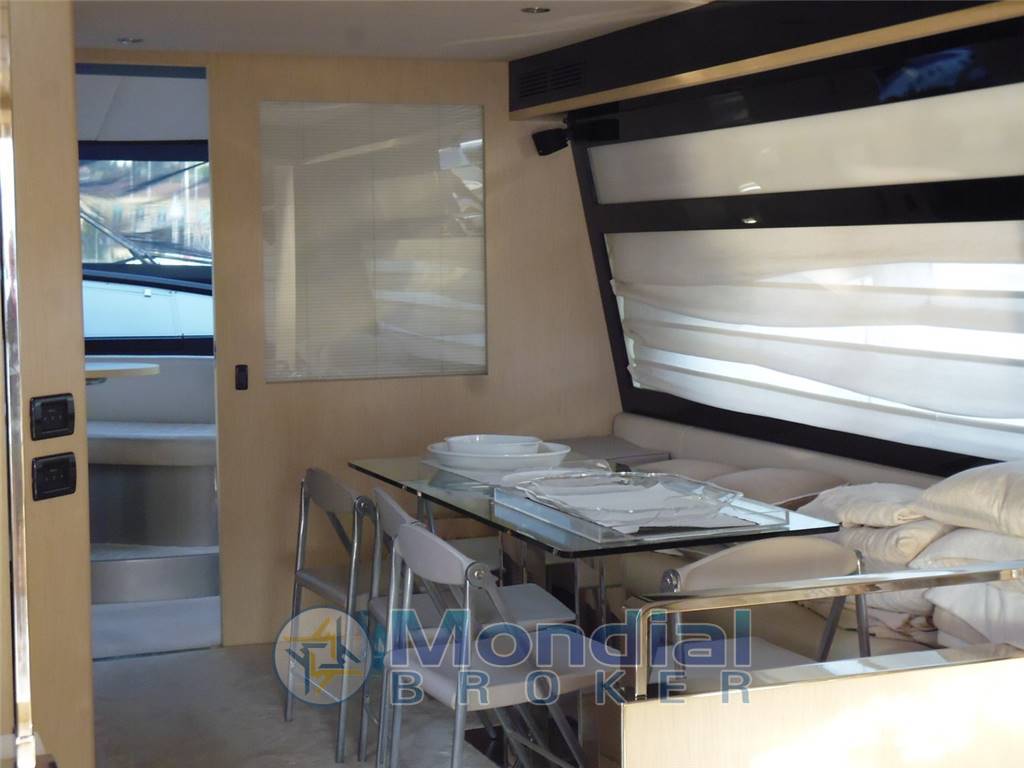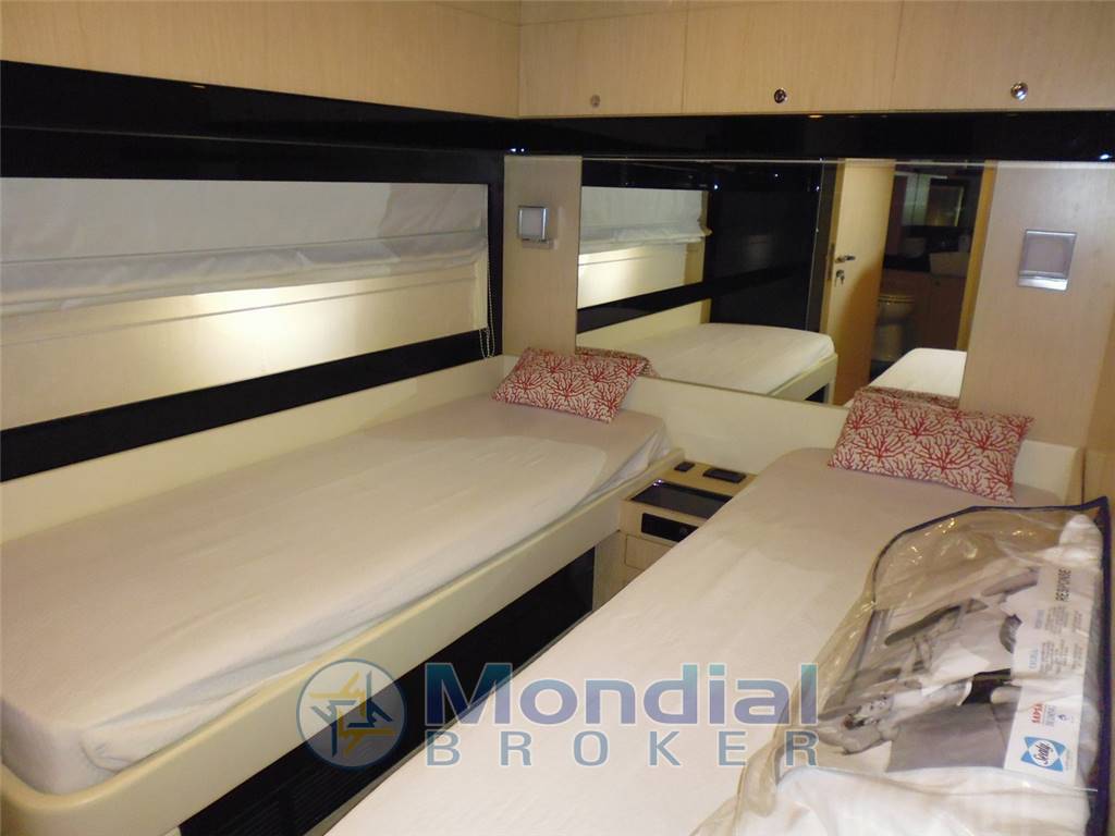 2 Plotter con antenna GPS (Raymarine E120), 2 Radio VHF (Simrad), Allarme motore, Allarme sentina, Ancora, Autoclave, Batterie, Bussola, Caricabatterie, Comando motori elettronico, Computer di bordo, Contametri catena, Contamiglia, Display, Doccia esterna, Doppia timoneria, Ecoscandaglio, Elica di poppa - stern thruster, Elica di prua - bow thruster, Faro orientabile, Flap idraulici, Garage per tender, Gruette per tender su fly, Impianto antincendio, Indicatori Flaps, Luci di cortesia, Passerella (scomparsa elettroidraulica), Piattaforma (poppa), Pilota automatico, Pompa di sentina automatica, Pompa di sentina elettrica, Porta ingresso, Porta laterale, Pozzetto Teak, Presa 220V banchina, Presa acqua banchina, Radar, Salpa Ancore Elettrico, Scaletta da bagno, Stabilizzatori (Arg Mitsubishi), Tavolo pozzetto, Tromba, Winch tonneggio di poppa