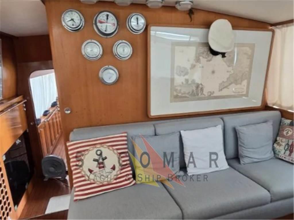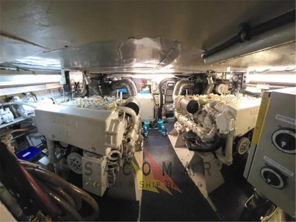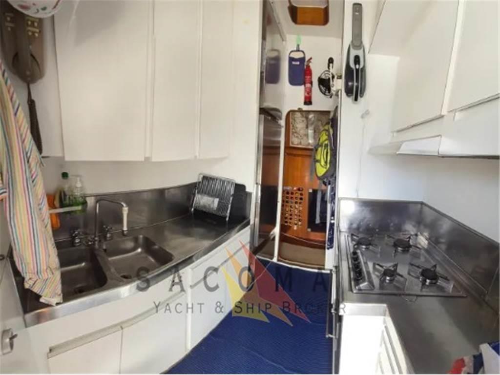 Aria condizionata (2021 Climma), Boiler, Cucina, Cuscineria di prua, Cuscineria fly, Dissalatore (215 l/h), DVD, Forno, Frigorifero interno, Impianto TV, Prese interne 12v, Prese interne 220v, Stereo, Teli copri finestra, Telo copriconsolle, Telo coprisedile, TV, WC marino elettrico, 1 pompa antincendio, 2 pompe autoclave, batterie motori 4, batterie servizi 6, 1 caricabatterie Mastevolts per batterie motori e servizi, 1 caricabatterie Mastervolts per batterie bow thruster, 1 caricabatterie generatori, 1 adio vhf e 1 portatile, salpa ancora, gruetta sul fly e a poppa, tender 4,5 mt con fuoribordo 6cv Tohatsu, coperture laterali+poppa+fly invernali, tavolo e sedie per fly, tavolo e pache a scmparsa per pozzetto