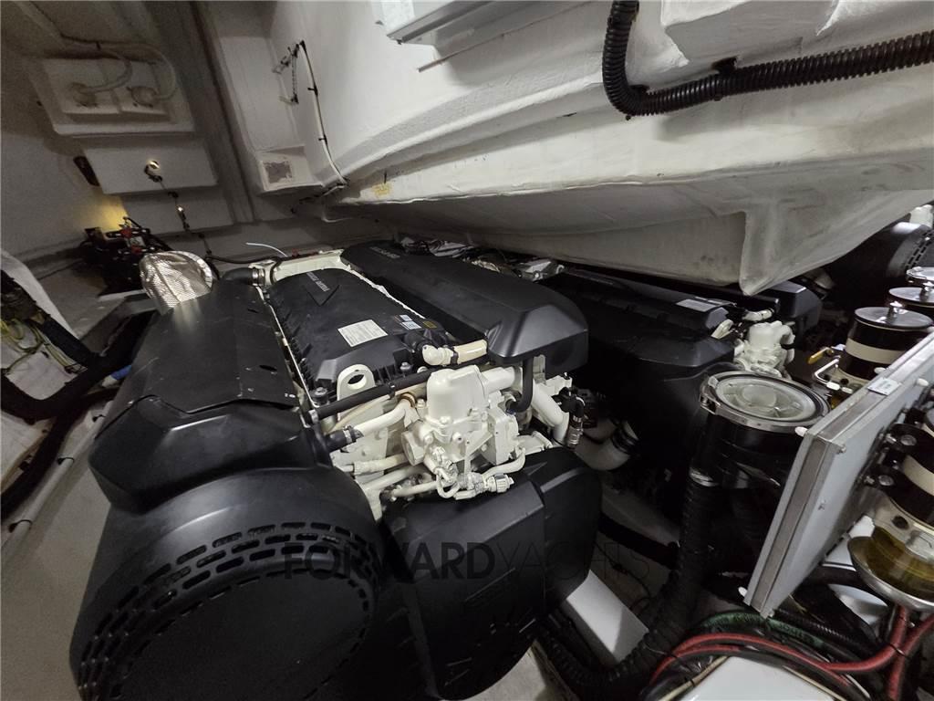 Equipaggiata con 3 motori Volvo Penta da 550Hp e dotata di molti accessori: stabilizzatori Seakeeper, dissalatore, elica di prua, hard-top, passerella a scomparsa, garage per tender, pozzetto e camminamenti laterali in teak, luci subacquee, flap elettrici, Tender Pirelli 330 jet (2021), winch tonneggio di poppa, sistema di aria condizionata e molto altro.
