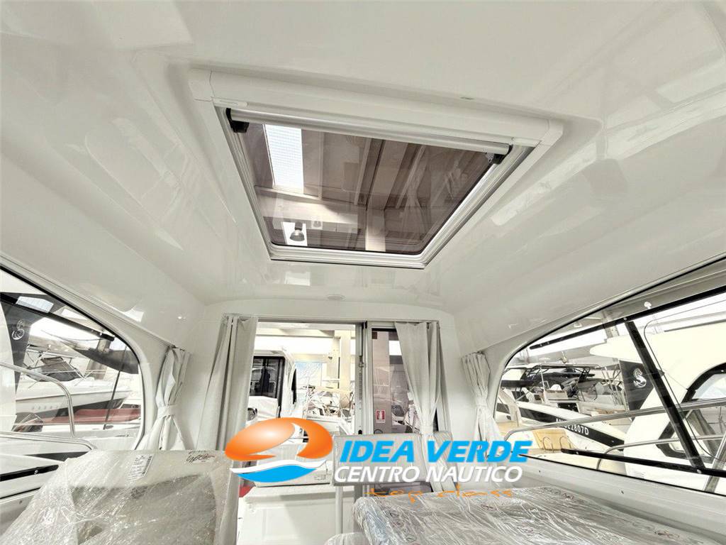 The interior layout is completed by a separate, functional and well-organized bathroom, equipped with a marine toilet and sink, ensuring a high level of comfort for the crew. Overall, the interior of the Antares 8 OB offers an ideal balance between practicality, habitability and style, making the boat versatile and pleasant to experience in any situation.
