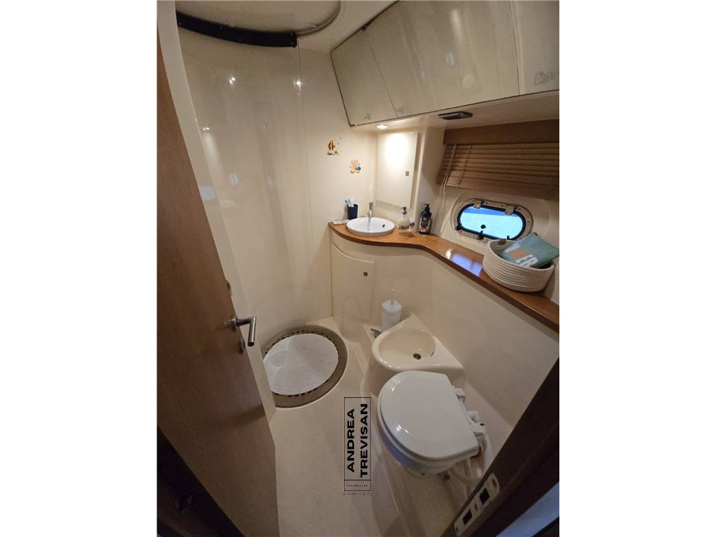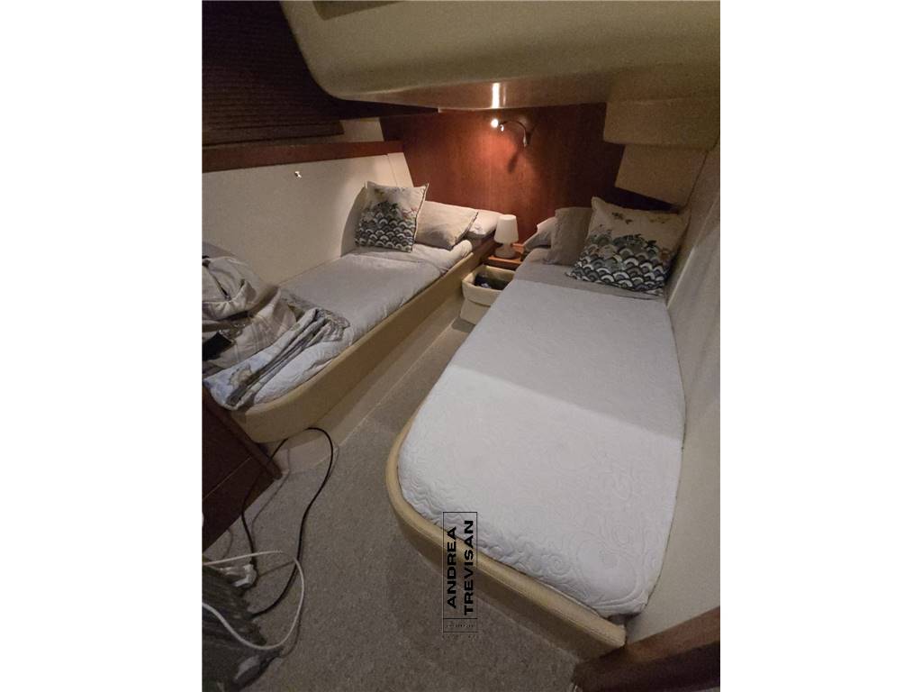 essenza in ciliegio americano e rifiniture in finta pelle sky color crema.Le cabine di bordo sia ospiti a letti singoli che armatoriale dispongono di bagno indipendente con doccia tutti in ottimo stato di conservazione e manutenzione.