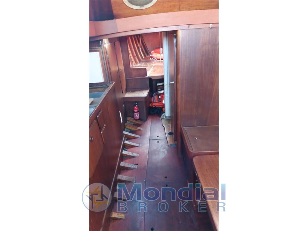 Prima della cabina armatoriale che si trova a prua con cuccetta a V,cassetti, ripostigli e vari gavoni, per accogliere 2 persone,a destra troviamo il bagno con doccetta, lavello abbattibile, armadietti e wc elettrico, contrapposto ad un armadio cerate e vestiti sulla sinistra