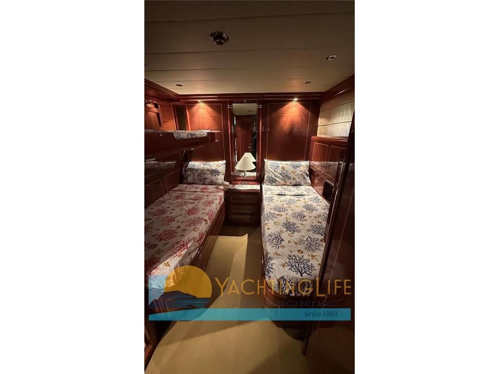1 Matrimoniale italiana, 1 Matrimoniale francese, 1 Doppia in piano, 1 Cabina equipaggio, 3 Toilette con doccia, 1 Dinette, 1 Cucina, 1 Toilette Equipaggio