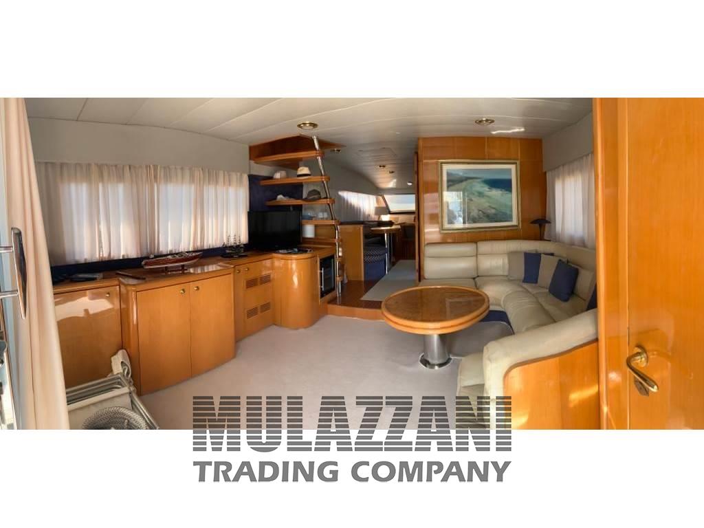 Allarme motore, Allarme sentina, Ancora, Angolo barra, 2 Asse di rispetto, Autoclave, Batterie (2022), Bussola, Camminamenti laterali in teak, Caricabatterie (2022), Display, Doccia esterna, 2 Ecoscandaglio (2022), Elica di poppa - stern thruster (revisionata), Elica di prua - bow thruster (revisionata), Faro orientabile, 2 Flap idraulici, Gruette per tender su fly (Besenzoni), Impianto antincendio, Indicatori Flaps (impianto nuovo 2022), Luci di cortesia, Passerella (idraulica), Piattaforma, 2 Pilota automatico, 2 Plotter con antenna GPS (2022), Pompa di sentina automatica, Pompa di sentina elettrica, Pompa di sentina manuale, Porta ingresso, Pozzetto Teak, Presa 220V banchina, 2 Radar (2022), 2 Raddrizzatore (2022), 2 Radio VHF (2022), Rollbar (con faretti nuovi), Salpa Ancore Elettrico (revisionato e nuova ancora), Scaletta da bagno, Tavolo pozzetto, Tender, Tromba, 3 Winch