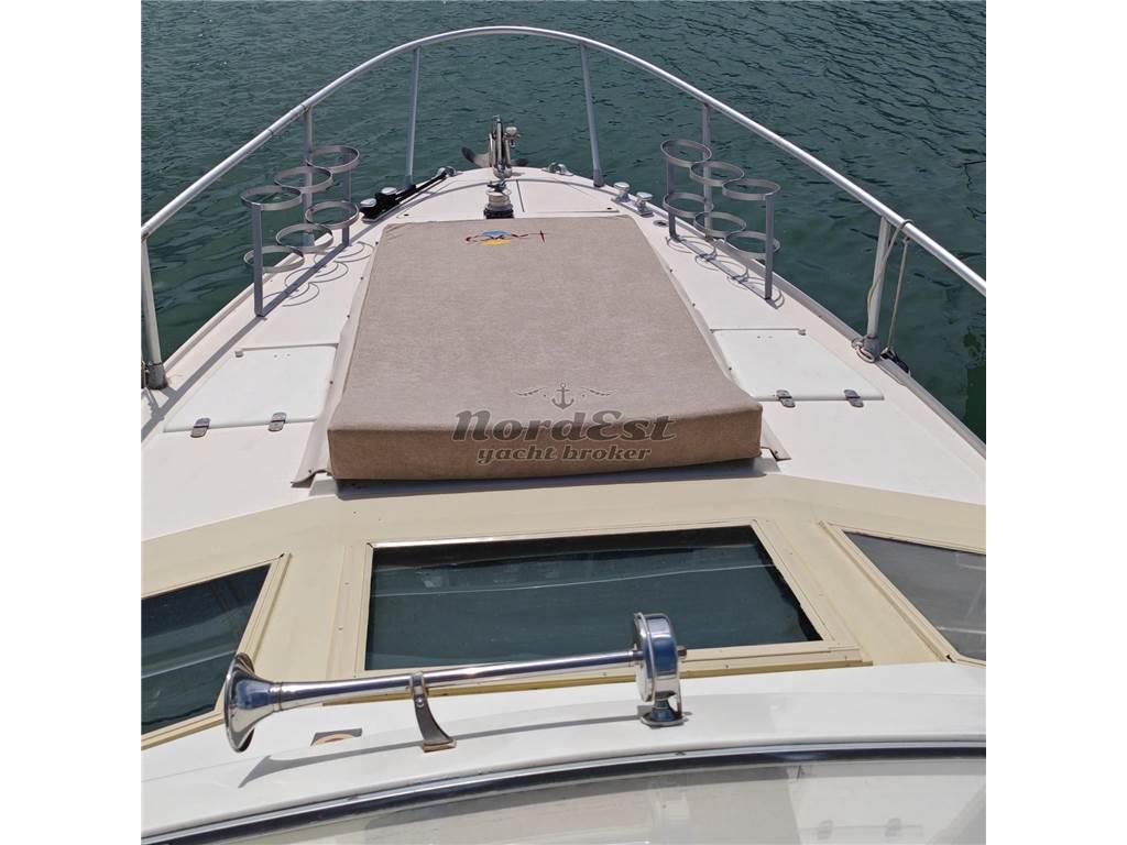 Rio 1000 Fly – anno 1990. Natante in ottime condizioni, appena refittato, motorizzato con due VM Mercruiser D-Tronic da 320 HP, completamente rifatti nel 2022 (circa 200/250 ore di moto). Molto performante: velocità di crociera 27/28 nodi a 3400 giri, velocità massima circa 38 nodi. Consumo a 22 nodi: 56 litri/ora totali.