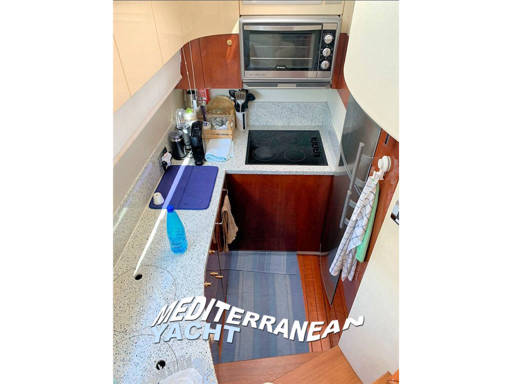 - Fly arredato con prendisole, divano semicircolare, tavolo e mobile di servizio, timoneria con tre poltrone, gru per tender