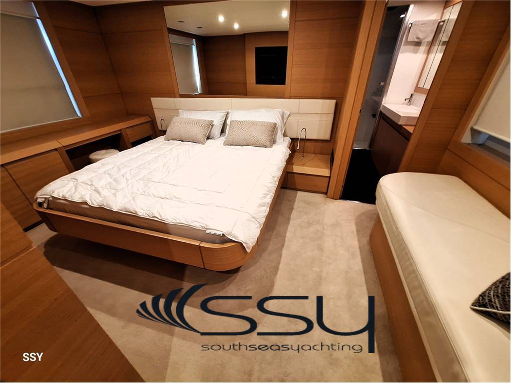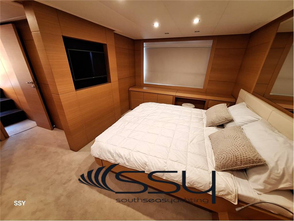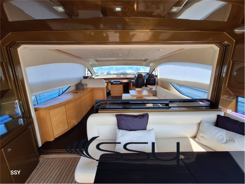 - Salone: Divano ad L in pelle Poltrona Frau con tavolo ampliabile, contrapposto a un mobile bar/TV con TV retrattile da 32’’, sistema audio Bose, ricevitore satellitare HD Strong SRT7300 e minibar Vitrifrigo. Plancia comandi con due sedili in pelle Besenzoni, regolabili elettricamente.