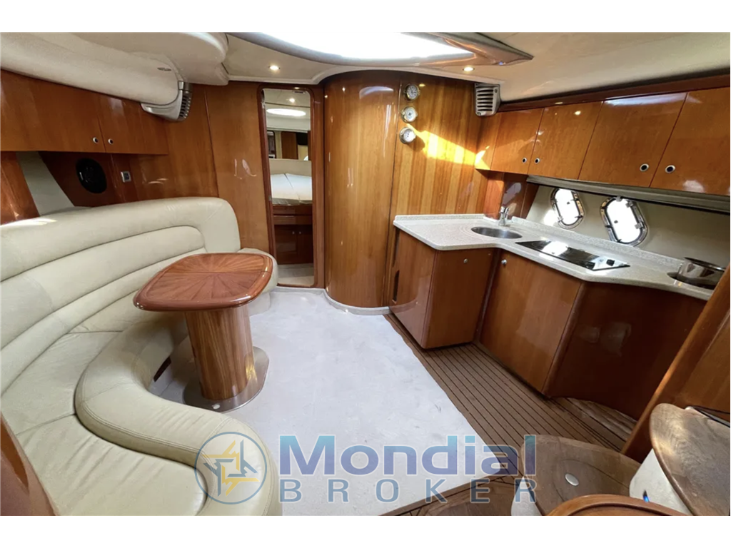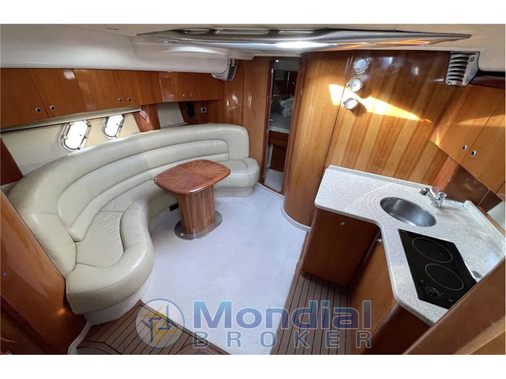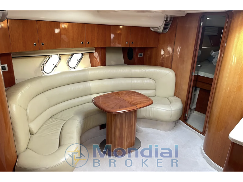 La dinette è il cuore sociale dell’imbarcazione: ampia, luminosa, accogliente. Sofa “a U” con tavolo centrale che può diventare letto aggiuntivo. Rivestimenti in pelle o tessuto tecnico elegante, inserti in legno pregiato, finestrature laterali e pensiline apribili favoriscono l’effetto “open air”.