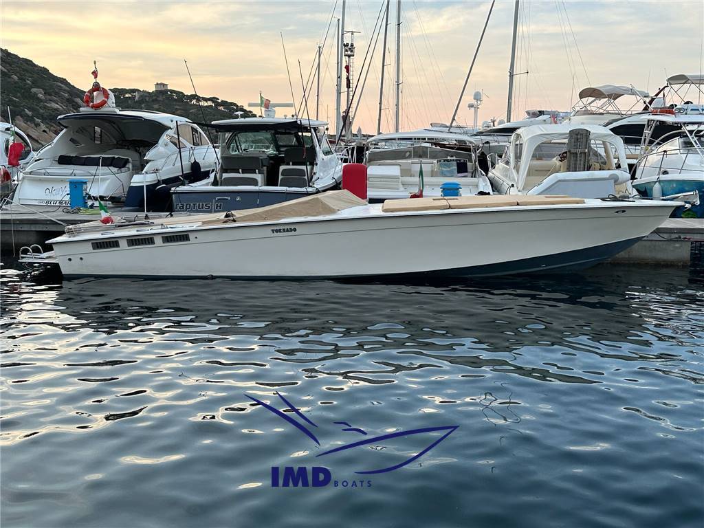 Il Tornado 35 appartiene alla produzione Tornado dei primi anni ’80, periodo in cui il cantiere italiano sviluppava scafi ad alte prestazioni ispirati alla scuola offshore americana. In particolare, la filosofia progettuale richiama quella dei celebri Cigarette dell’epoca: carena deep-V pronunciata, scafo lungo e filante e vocazione chiaramente sportiva.