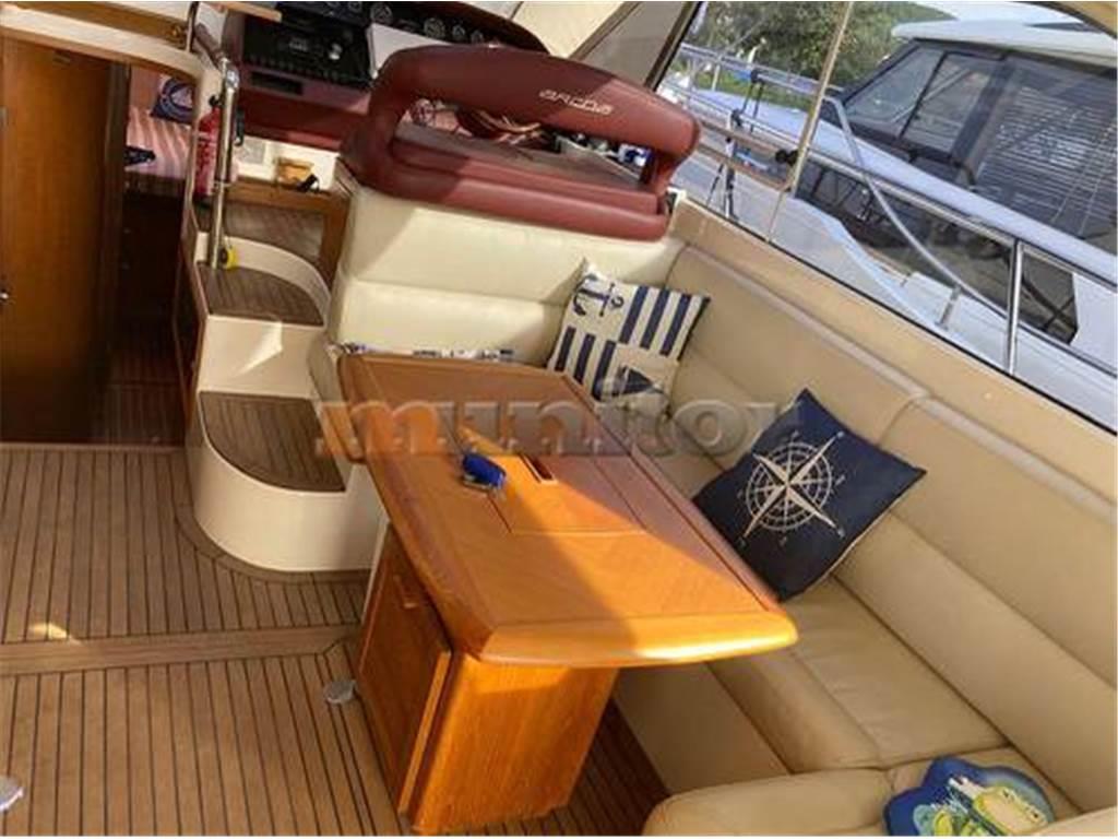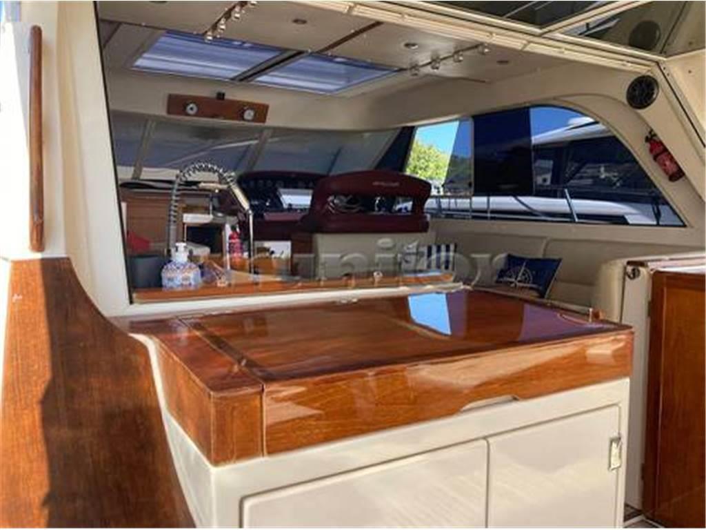 VHF, Ecoscandaglio, Aria condizionata, Riscaldamento, Pilota automatico, Radar, Doccia in pozzetto, Verricello elettrico per l'ancora, Impianto di acqua calda, Plotter GPS, Caricabatterie, Cuscini di coperta, Passerella idraulica, Elica di prua, Elica di poppa, Impianto audio, Parabordi, Piattaforma da bagno, Scaletta da bagno, Generatore, Hard top, Batteria di servizio, Batteria motore, Teak in pozzetto, Teak a poppa