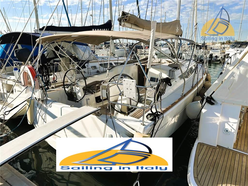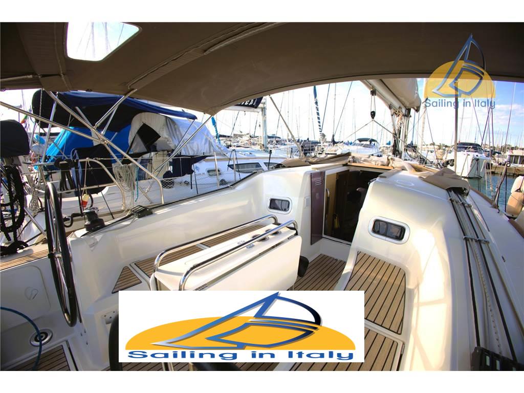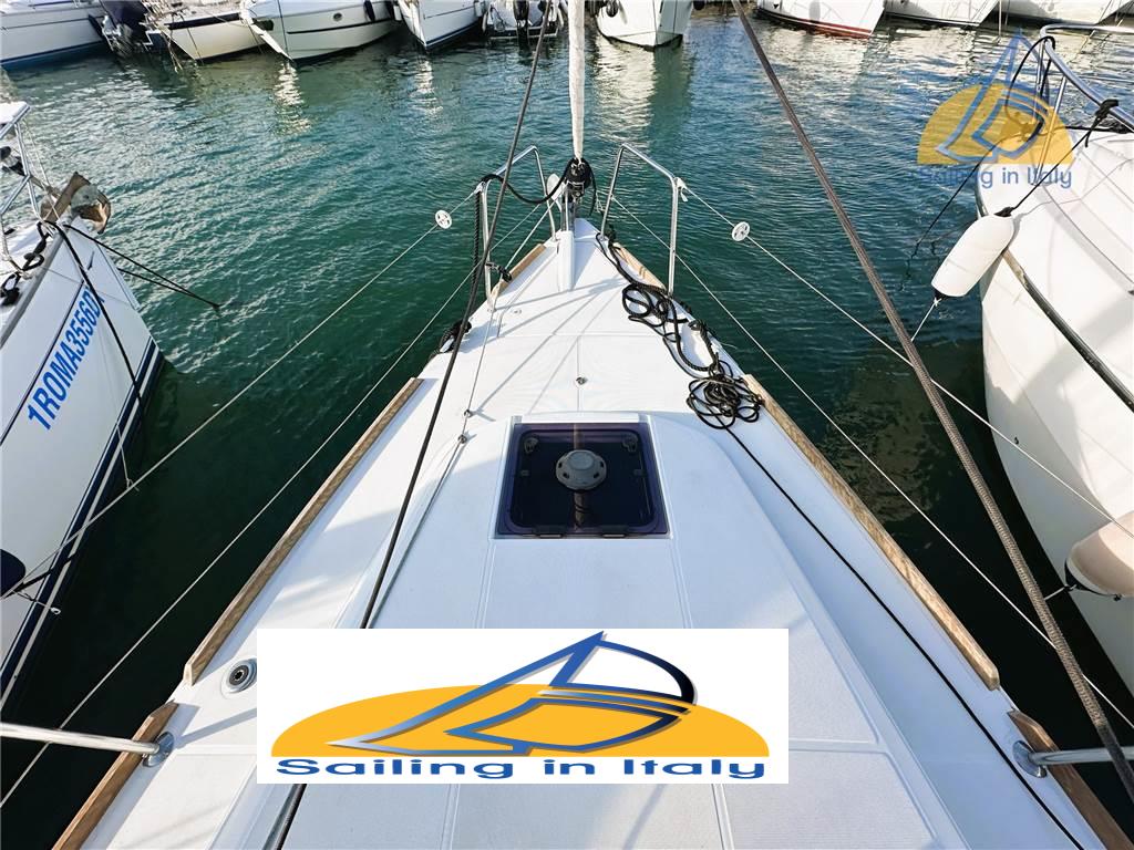 Doppio timone, chiglia Standard, coperta con passavanti ampi e pozzetto ergonomico, plancetta di poppa abbattibile, lazy bag, lazy jack e randa steccata completa, fiocco avvolgibile, winch Harken, stopper Spinlock, strumentazione elettronica completa Raymarine, pilota automatico, GPS + plotter cartografico in console, stazione del vento, ecoscandaglio, log e bussola, elica a 3 pale, batteria servizi + motore con caricabatterie 220 V, luci LED interne ed esterne, boiler acqua calda, doccia in pozzetto, cucina completa 2 fuochi, forno e frigorifero,tavolo da carteggio, divano trasformabile in dinette, wc marino, serbatoio acque nere, impianto stereo Bluetooth
