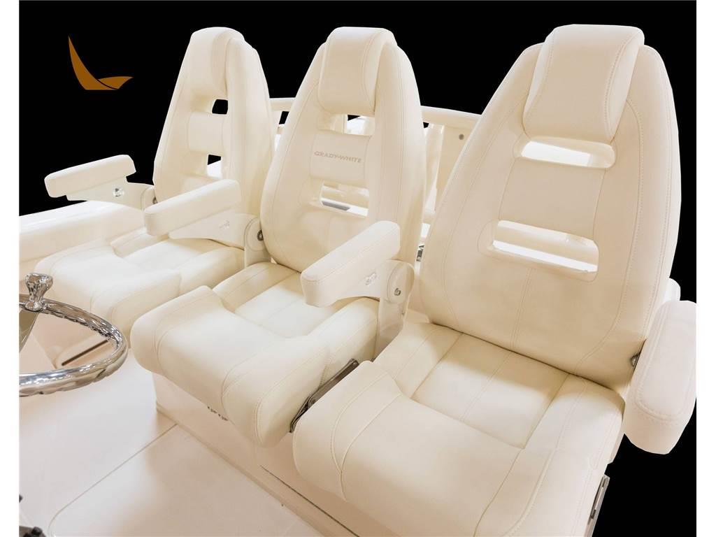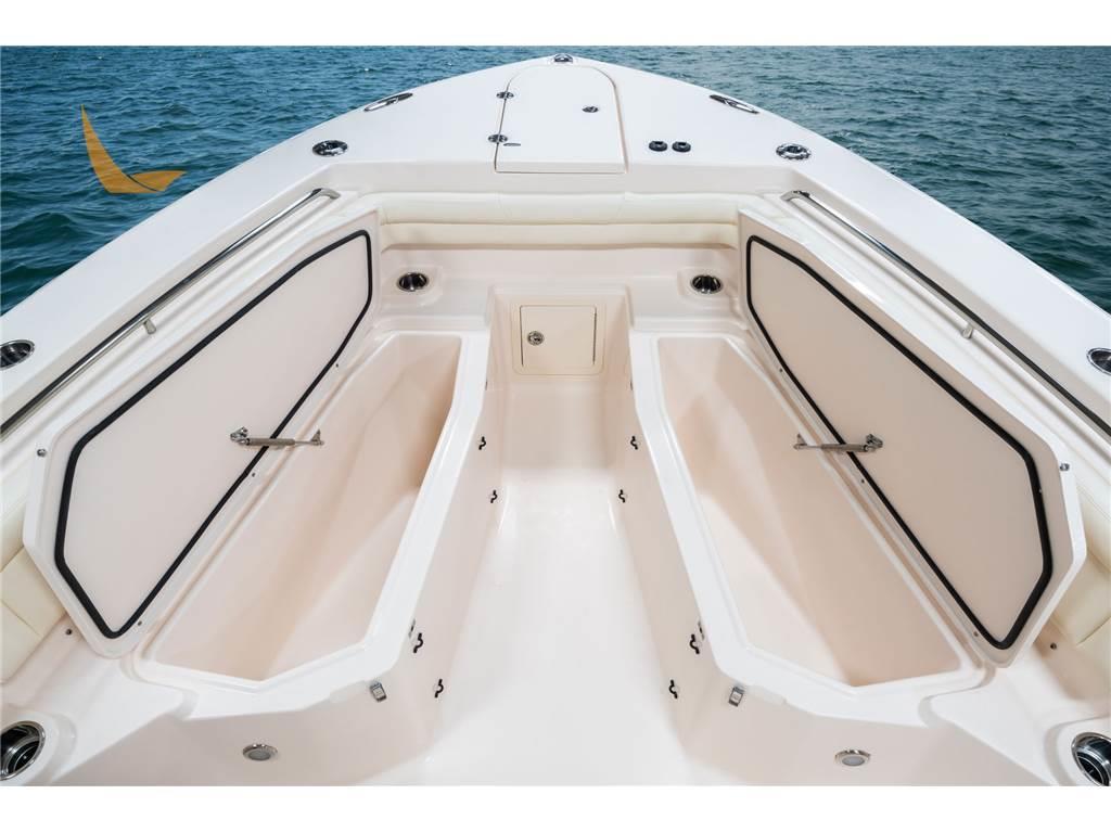 Il 336 ha sedili a timone innovativi, un enorme pozzetto e una grande consolle con cuccetta. L'attenzione ai dettagli rende il Canyon 336 adatto per la pesca sportiva ad acqua salata altamente funzionale e desiderabile.