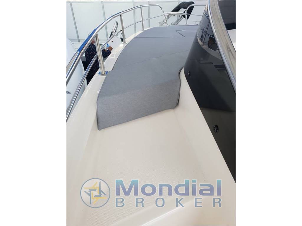 Nuovo cabinato del cantiere nautico italiano Trimarchi dal design moderno ed elegante. Pozzetto con seduta di guida laterale, prendisole di poppa, grande lettino prendisole a prua e fornello e lavello esterno. Sottocoperta, grande cabina con letto doppio, cuccetta di poppa e raffinato vano bagno separato con lavandino e Wc elettrico.
