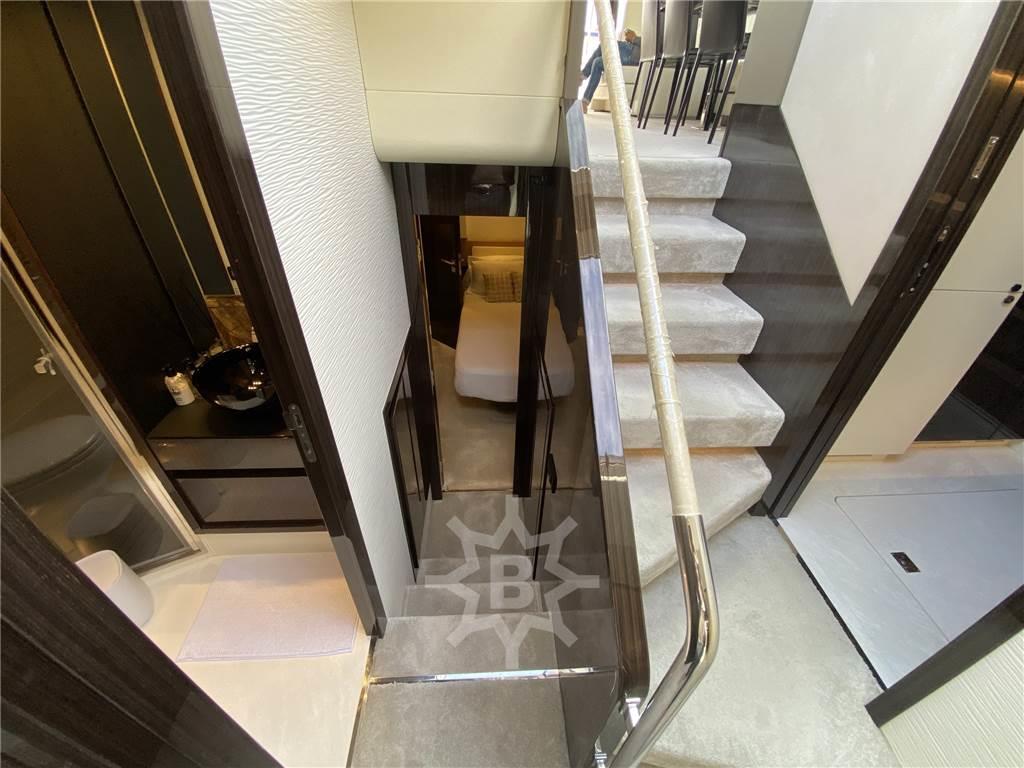 Angolo barra, Antenna radar, Auto Dynamic Trim Interceptor (Huprees anti rollio e beccheggio), Bussola, Camminamenti laterali in teak, Computer di bordo, Contametri catena, Doccia esterna (con soffione nella beach area), Ecoscandaglio, Elica di prua - bow thruster, GPS, Hard top, Impianto Aria Compressa, Joystick, Log, Luci di cortesia (+ nome barca retroilluminato.), 10 Luci subacquee (doppia tonalità colore), Passerella (a scomparsa), Piattaforma (pivottante trasformabile in beach area), Pozzetto Teak, Radar, Salpa Ancore Elettrico, Scaletta da bagno, Sedile Copilota, Stabilizzatori (Seakeeper), Tavolo pozzetto, 2 Winch tonneggio di poppa