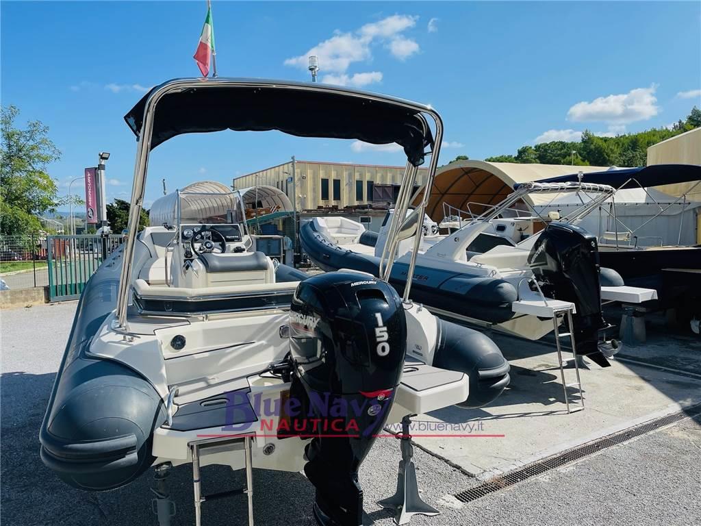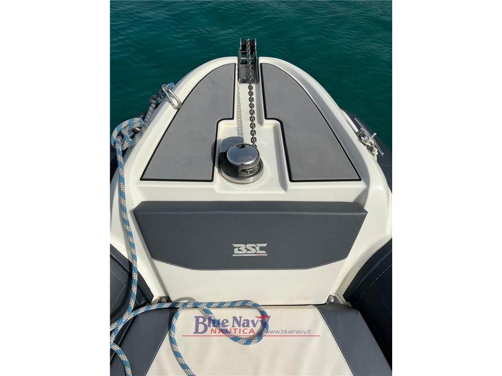 Vendesi il gommone usato BSC 62 EBONY (6,5mt fuoritutto) del 2022 motorizzato con fuoribordo Mercury 150hp del 2022 , con ca 200 ore di navigazione, sempre tagliandi Mercury, rimessaggio al coperto. Battello elegante, con armonioso aspetto dei tubolari con morbide finiture soft touch, cuscineria De Luxe e volante in pelle. Layout con ampi spazi di prendisole prua e di poppa adatti ad ospitare fino a 12 persone. Confortevole divanetto di poppa corredato di avvolgente poggiaschiena con struttura a doppio tubolare. Equipaggiato con cuscineria completa, Roll bar con tendalino, plancette di poppa, Teak sintetico, Copriconsol, telo copri spagliera poppa, Strumentazione Raimarine 9 pollici, ecc