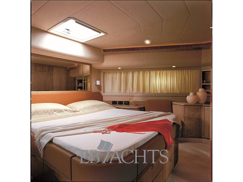 Cabina armatoriale a centro barca, spaziosa e raffinata.