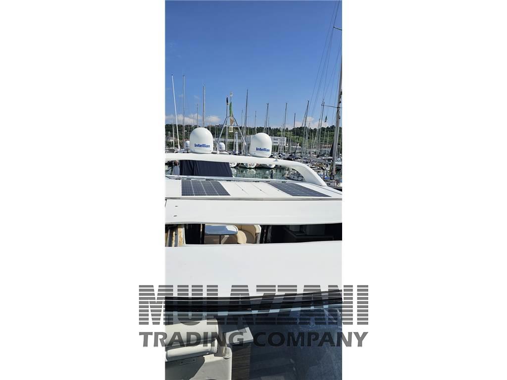 2 Allarme motore, Allarme sentina, Ancora, Angolo barra, Apertura Vano Motore Elettrica (sala macchine ,locale tecnico , locale stiva tutti alzabili elettricamente), Autoclave, Autogonfiabile, Batterie (nuove 2022), Bussola, Caricabatterie, Colorazione speciale (blu), 2 Comando motori elettronico, Computer di bordo, Contametri catena, Contamiglia, Cronometro, Display, Doccia esterna, Elica di prua - bow thruster, 2 Flap idraulici, GPS, Hard top (con tettuccio apribile), Impianto antincendio, Indicatori Flaps, Joystick, Luci di cortesia, Luci subacquee, 2 Pannelli Solari, Passerella (a scomparsa), Piattaforma (tenderlift), Pilota automatico, Plotter con antenna GPS, Pompa di sentina automatica, Pompa di sentina elettrica, Porta ingresso, Pozzetto Teak, Presa 220V banchina, Presa acqua banchina, Raddrizzatore, Radio VHF, Salpa Ancore Elettrico, Scaletta da bagno, Tavolo pozzetto (abbattibile), Tavolo Salone Abbattibile (12 persone), Tromba, T-Top, Winch tonneggio di prua