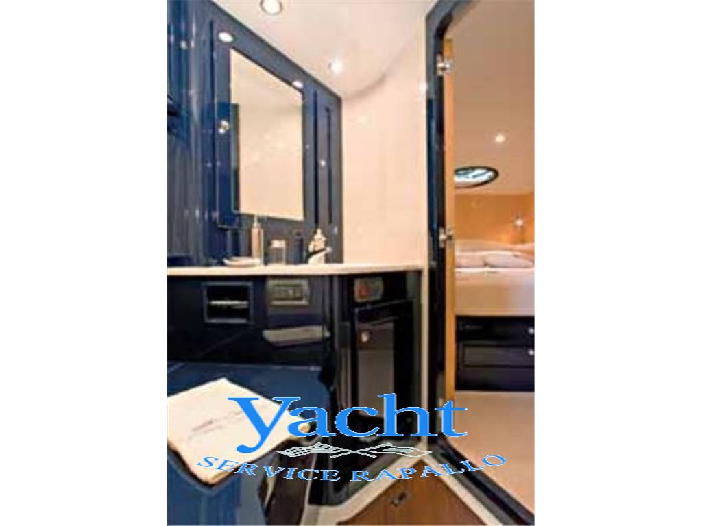 Armadietti e ripiani - Lavabo in corian con miscelatore - Aspiratore - Specchio - WC elettrico con funzione bidet - Illuminazione e prese di corrente - Doccia con carabottino di teak in locale separato - Parure bagno - Oblò con tendina.