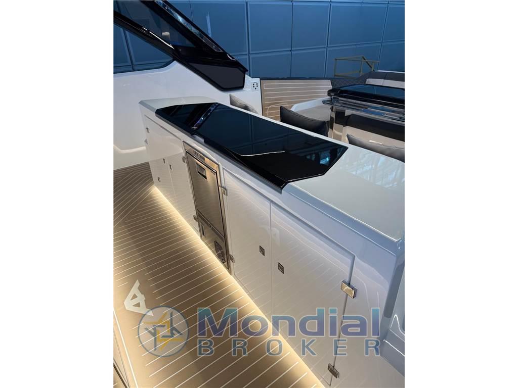 La carena a V garantisce una navigazione fluida, stabile ed efficiente, offrendo manovrabilità e sicurezza anche alle andature più sostenute. Il pozzetto è arricchito dalle sponde laterali apribili, un elemento di grande valore che amplia significativamente la superficie calpestabile e crea una vera terrazza sul mare, trasformando l’area living esterna in uno spazio aperto, luminoso e perfetto per il relax e la convivialità.