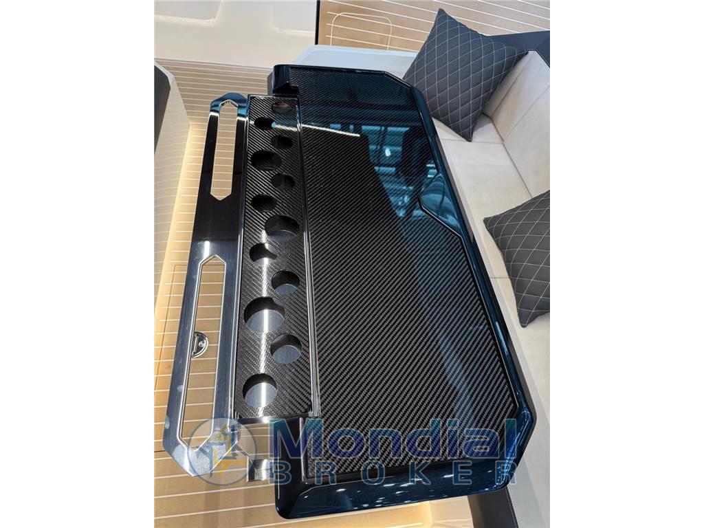 Ancora, Corrimano di sicurezza, Doccia esterna, Elica di prua - bow thruster, Hard top, Luci di cortesia, Luci subacquee, Passerella, Piattaforma, Pompa di sentina automatica, Ponte in teak, Porta ingresso, Pozzetto Teak, Presa acqua banchina, Salpa Ancore Elettrico, Scaletta da bagno, Stabilizzatori, Tavolo pozzetto.