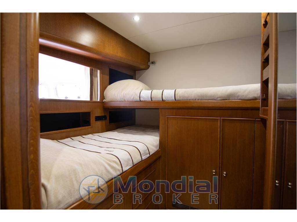 Gli interni, raffinati e luminosi, si distinguono per l’eleganza classica delle finiture in legno pregiato e per un layout intelligente che accoglie fino a 8 ospiti in 4 cabine spaziose, tutte dotate di bagno en suite. Il salone principale offre un’ampia zona living e dining con vista panoramica, perfetta per momenti di relax o convivialità a bordo.